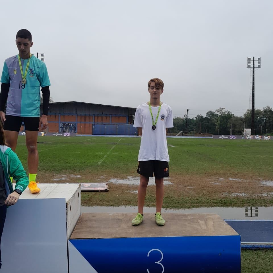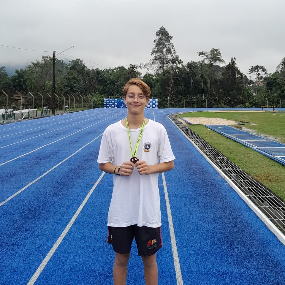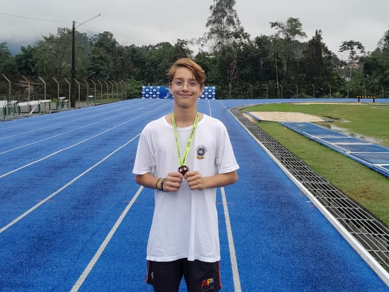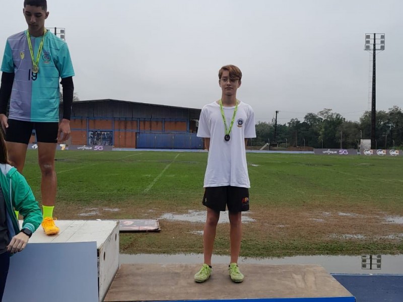 O aluno Gabriel Freiberger do 9° B/EF conquistou o 3° lugar no salto em distância