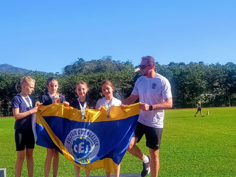 Estela, Júlia, Isis, Lara: 3° lugar revezamento
