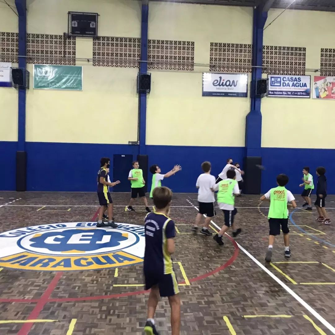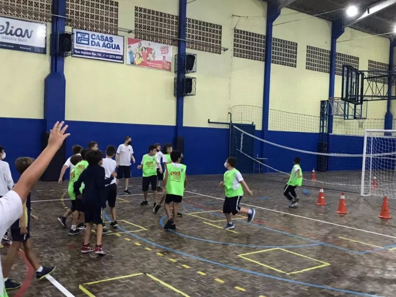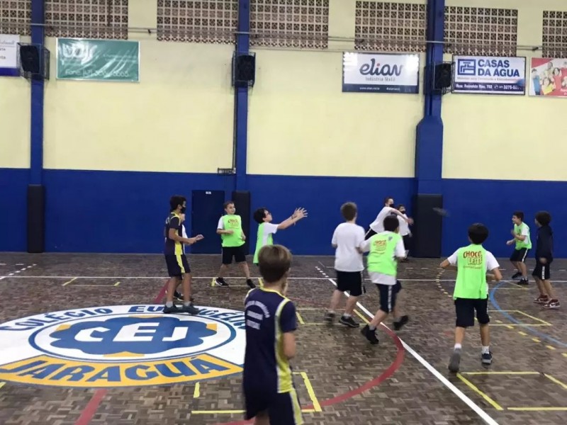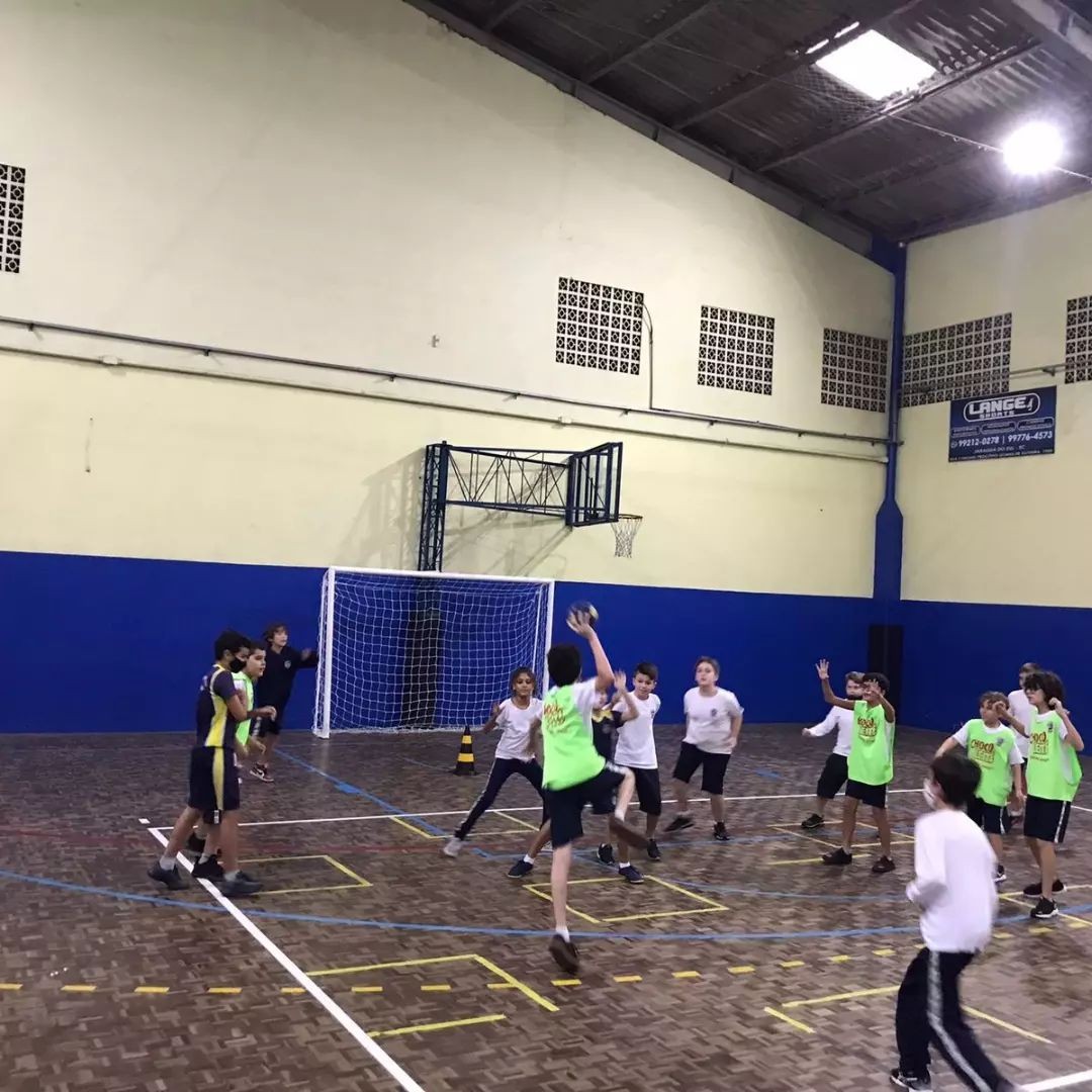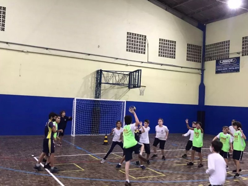 Uma delas é o handebol, um esporte coletivo que se encaixa nos esportes de invasão e tem por objetivo invadir a área adversária para chegar no seu objetivo principal: o gol. Nas aulas de handebol temos por objetivo ensinar atividades lúdicas para que eles consigam realizar os movimentos específicos do esporte. Além disso, temos atividades técnico-táticas para que os alunos consigam resolver situações de jogo.