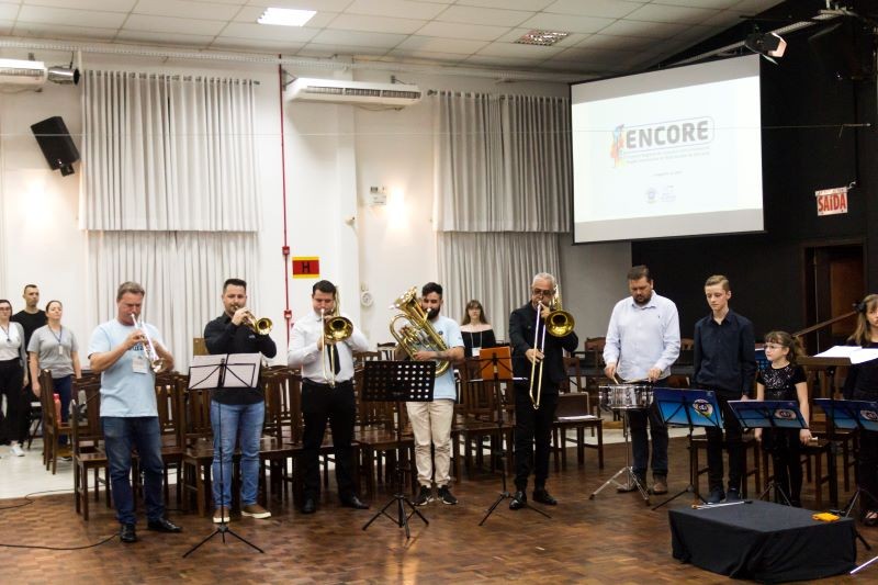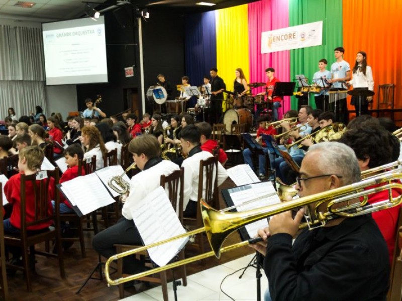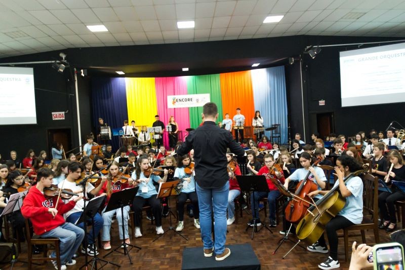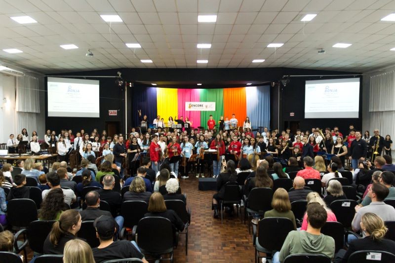 Mais notíciasSediando o 3º ENCORE, Encontro Regional de Conjuntos Instrumentais da Rede Sinodal de Educação - Região Setentrional, recebemos o Colégio Cônsul Carlos Renaux, Escola Barão do Rio Branco, Colégio Sinodal Doutor Blumenau e Colégio Bonja, além dos nossos instrumentistas do CEJ. O evento proporcionou a integração dos participantes e a prática musical conjunta, com a apresentação da grande orquestra formada pelos alunos, momento que foi aberto à comunidade. Parabenizamos a todos os alunos que participaram e encantaram com seu talento e dedicação!