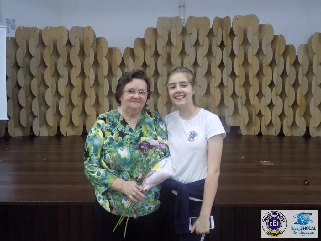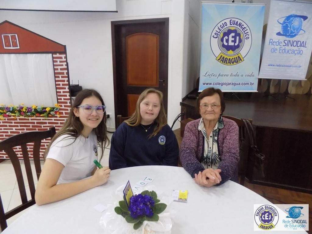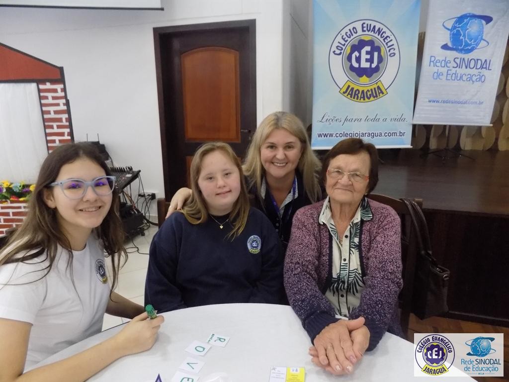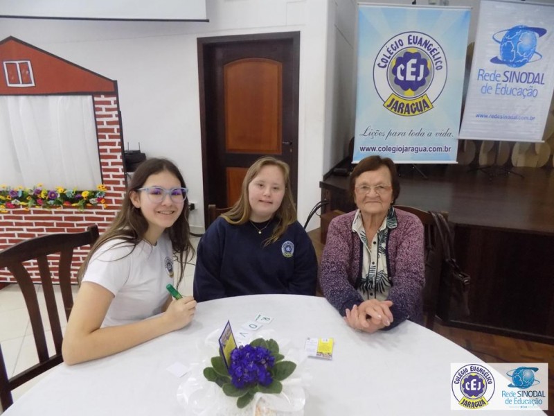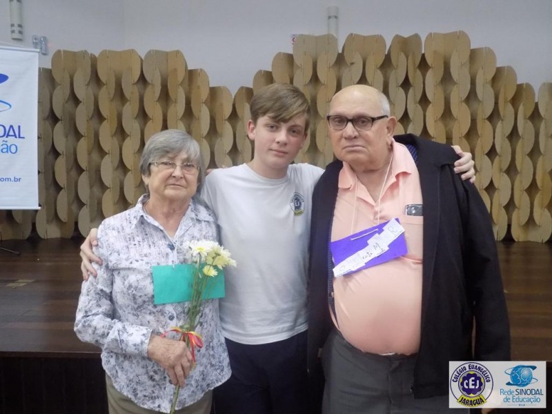 O projeto “Amo minha idade”, desenvolvido nas turmas dos oitavos anos do colégio, resultou em uma experiência mágica, interativa, emocionante e muito proveitosa. O projeto teve início em abril, com a leitura do livro “Quem, eu? Uma avó. Um neto. Uma lição de vida”, do autor Fernando Aguzzoli, editora Belas Letras. Seminários e outras atividades foram elaboradas partindo desse livro que relata a história real de um neto que abdicou de sua própria vida para cuidar de sua avó diagnosticada com Alzheimer. Realizando a leitura, uma grande lição de vida é apreendida: compartilhar a dor não é sofrê-la no coletivo, é livrar quem dela sofre.
