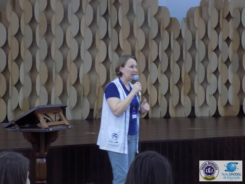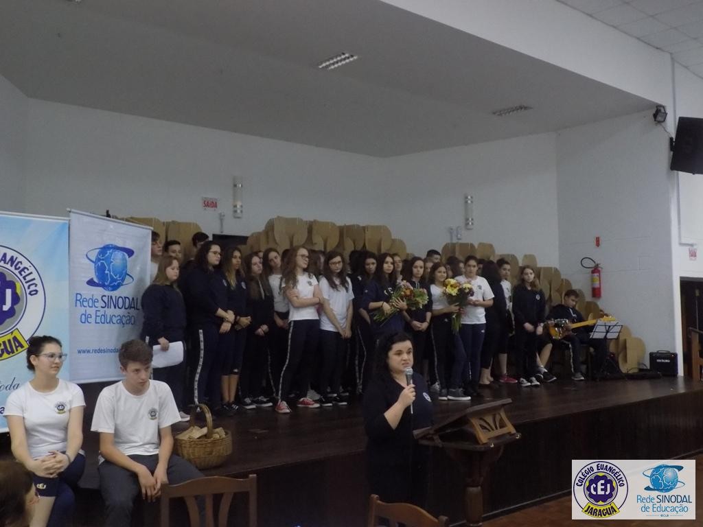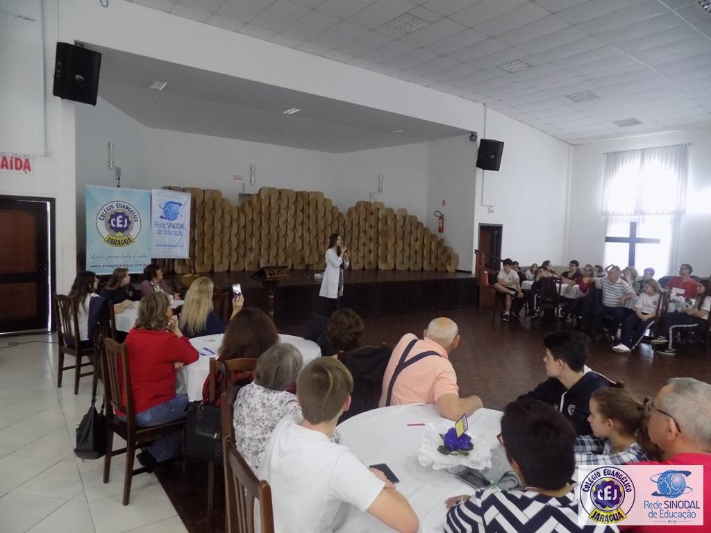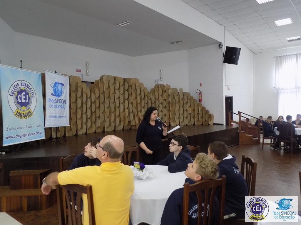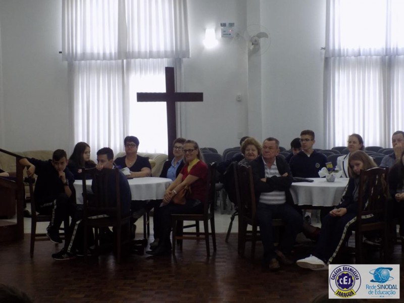 O projeto “Amo minha idade”, desenvolvido nas turmas dos oitavos anos do colégio, resultou em uma experiência mágica, interativa, emocionante e muito proveitosa. O projeto teve início em abril, com a leitura do livro “Quem, eu? Uma avó. Um neto. Uma lição de vida”, do autor Fernando Aguzzoli, editora Belas Letras. Seminários e outras atividades foram elaboradas partindo desse livro que relata a história real de um neto que abdicou de sua própria vida para cuidar de sua avó diagnosticada com Alzheimer. Realizando a leitura, uma grande lição de vida é apreendida: compartilhar a dor não é sofrê-la no coletivo, é livrar quem dela sofre.