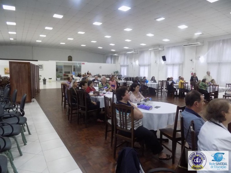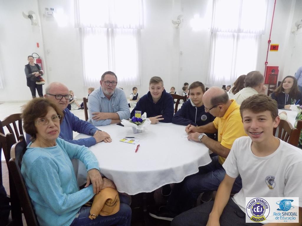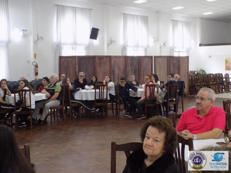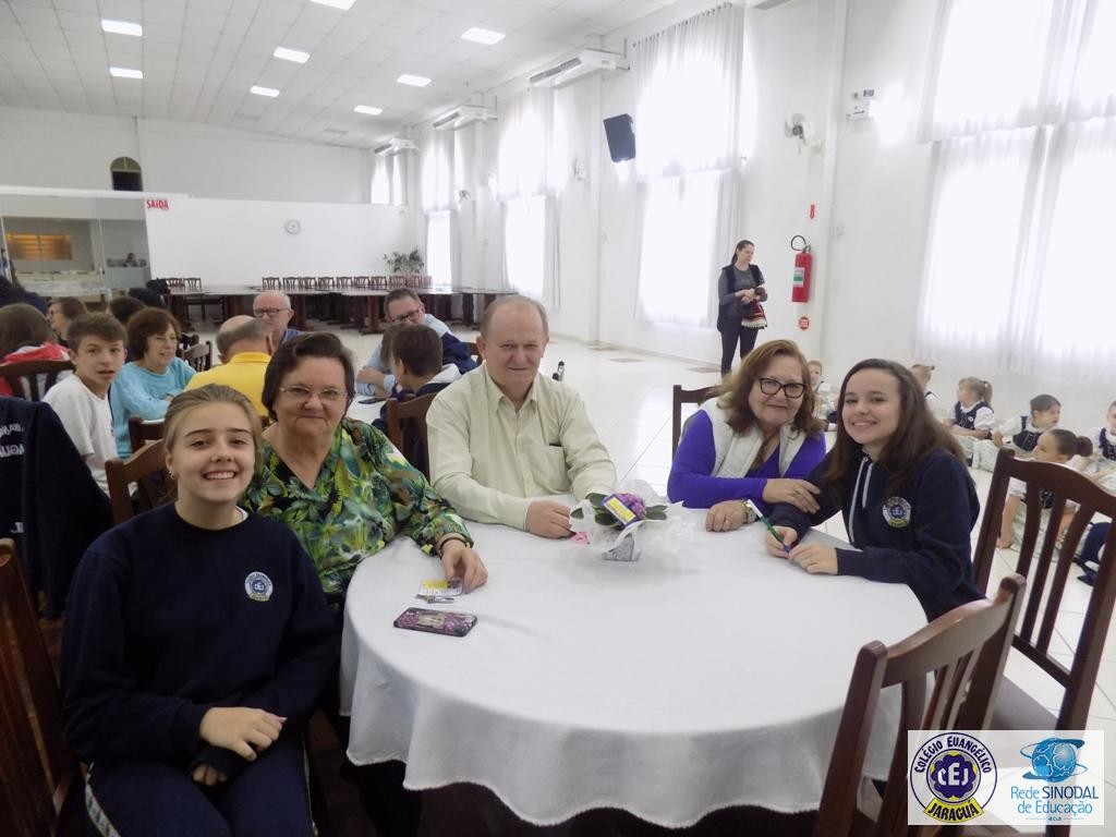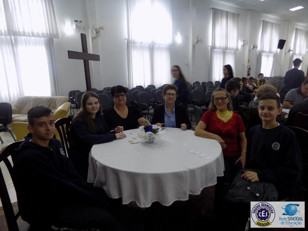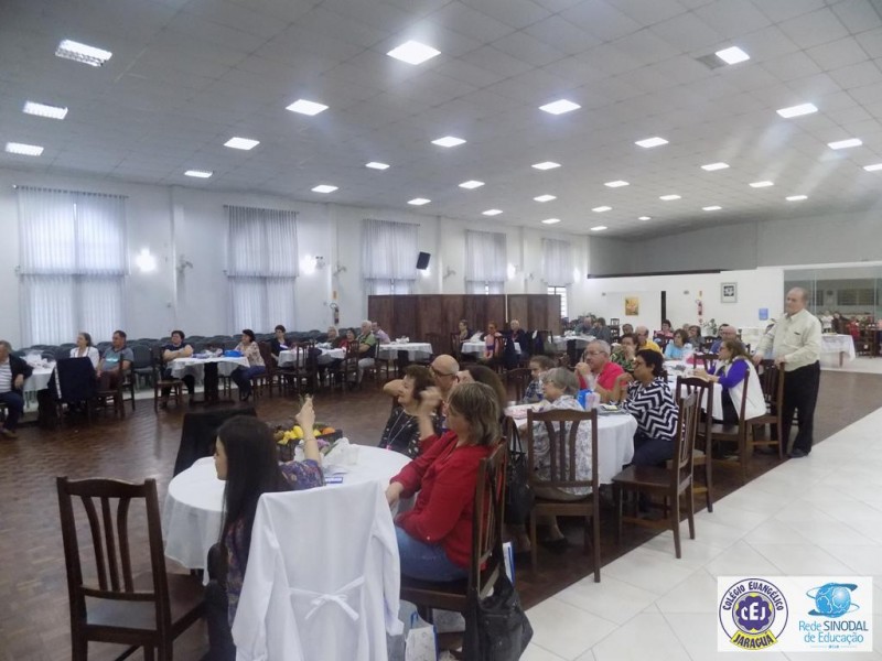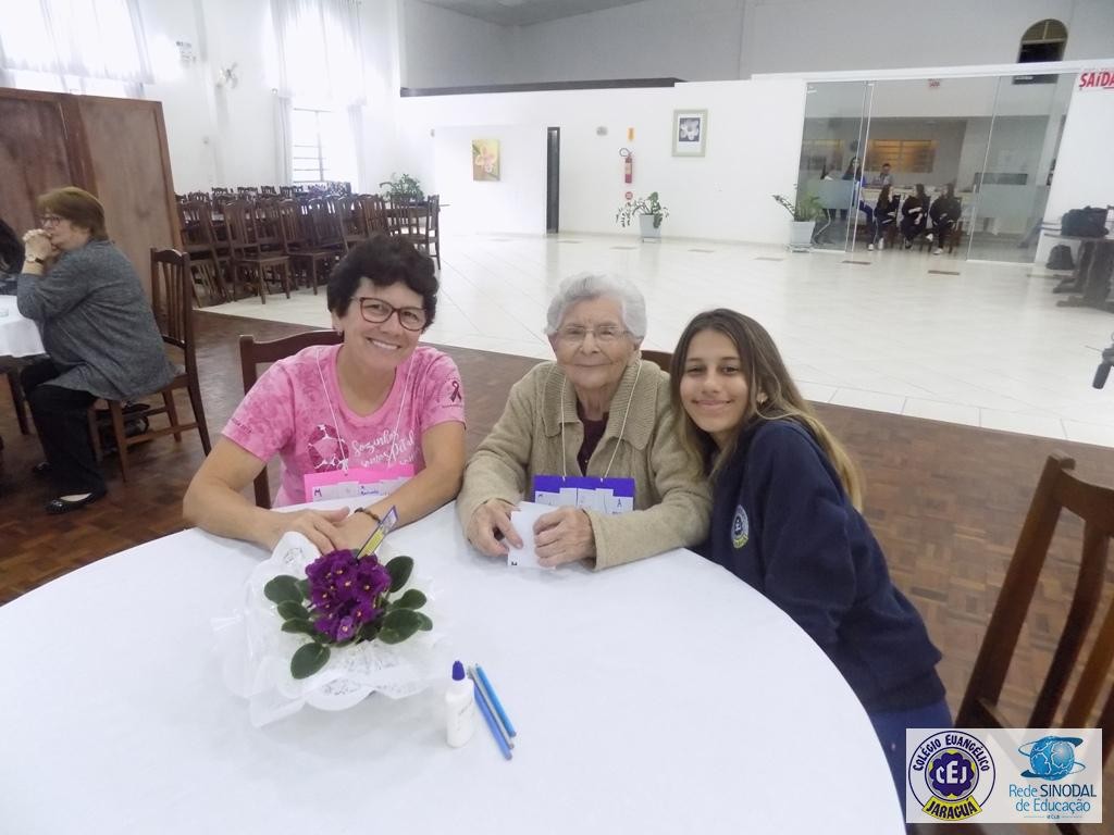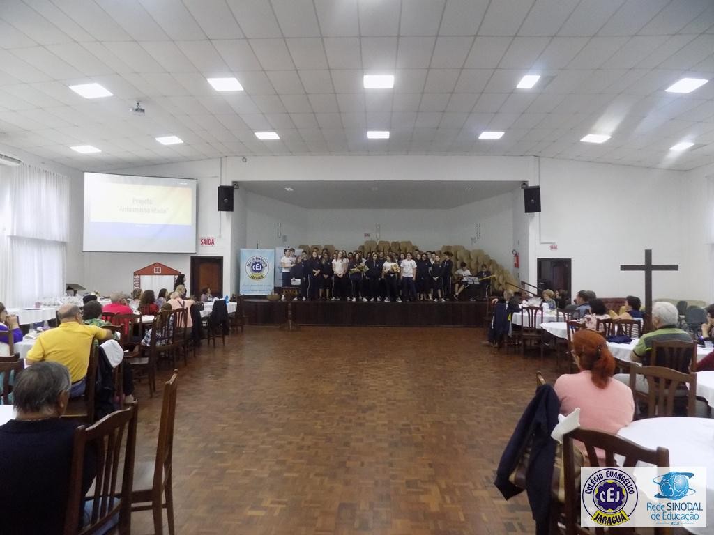 E como finalização do projeto ocorreu a tarde “Amo minha idade”. Evento carinhosamente planejado e elaborado para que alunos e avós vivenciassem momentos nostálgicos e raros, compartilhando histórias e extravasando emoções. O evento contou com a participação dos alunos dos oitavos anos, professores envolvidos e coordenação, profissionais da área da saúde e, logicamente, com as estrelas principais do evento: 39 avós. As atividades foram enriquecidas com muito conhecimento através do bate-papo com o orientador físico e recreador Professor Rafael Ramos, da Ludus Recreação, com o tema “corpo em movimento na terceira idade”, com a psicóloga Bárbara Bretzke conversando sobre “Mente feliz em todas as idades, principalmente na minha”e com a nutricionista Amandha Bernardi abordando o tema “Chás e alimentos benéficos para a melhor idade”.