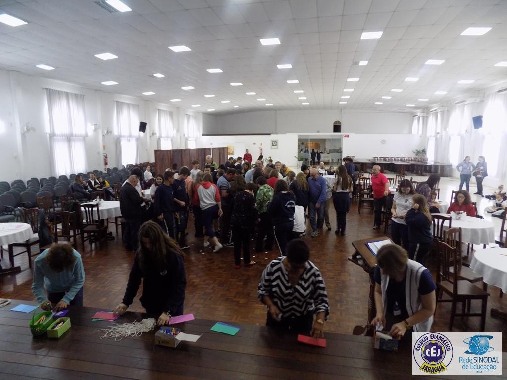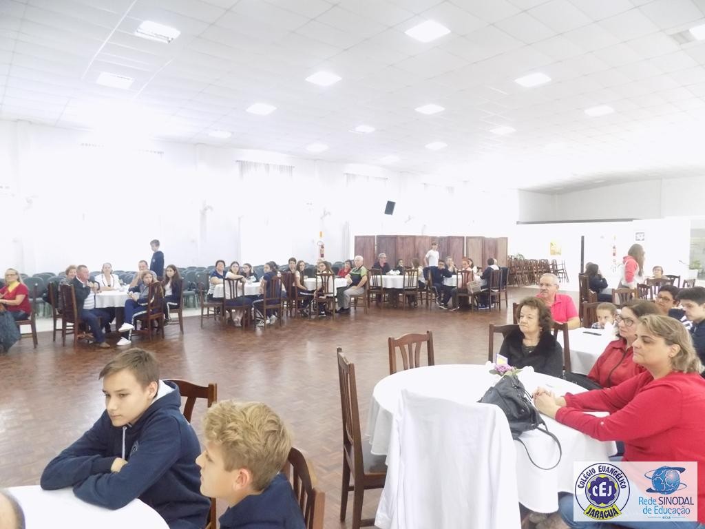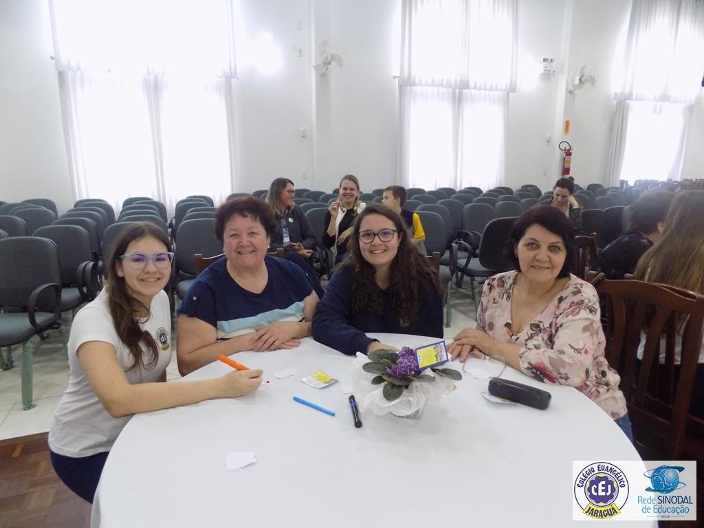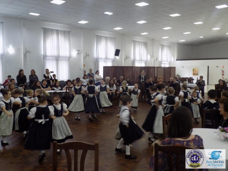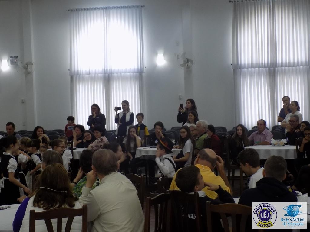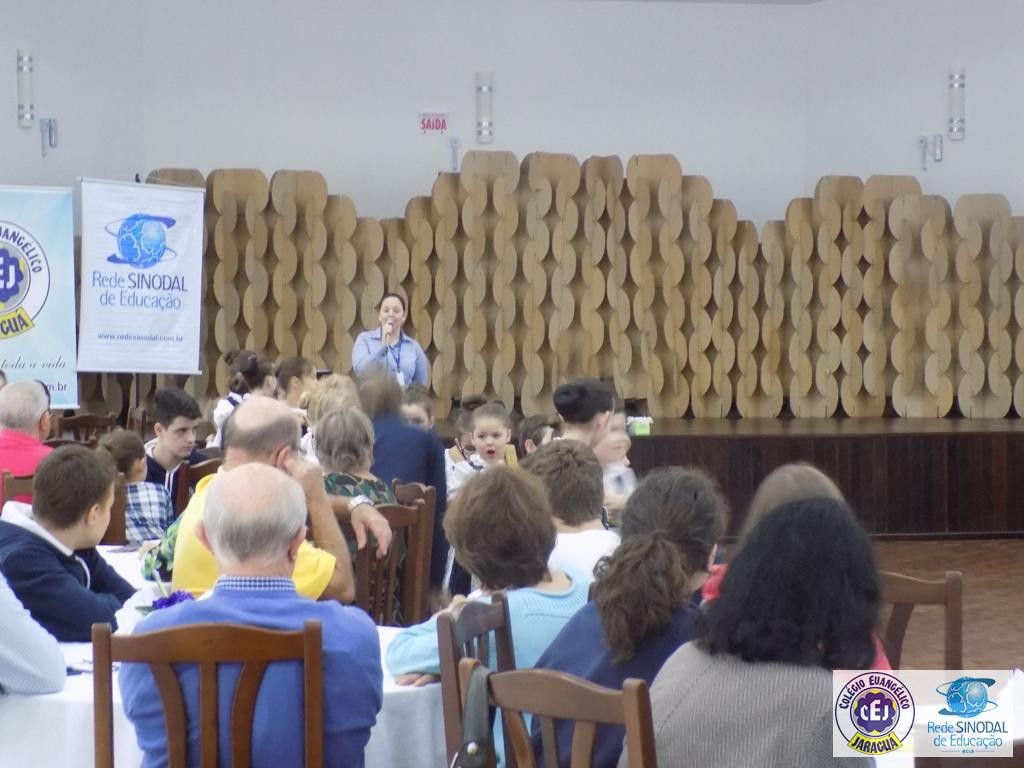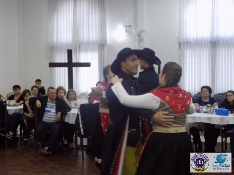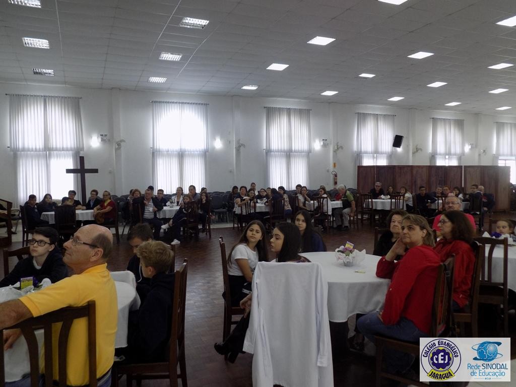 E como finalização do projeto ocorreu a tarde “Amo minha idade”. Evento carinhosamente planejado e elaborado para que alunos e avós vivenciassem momentos nostálgicos e raros, compartilhando histórias e extravasando emoções. O evento contou com a participação dos alunos dos oitavos anos, professores envolvidos e coordenação, profissionais da área da saúde e, logicamente, com as estrelas principais do evento: 39 avós. As atividades foram enriquecidas com muito conhecimento através do bate-papo com o orientador físico e recreador Professor Rafael Ramos, da Ludus Recreação, com o tema “corpo em movimento na terceira idade”, com a psicóloga Bárbara Bretzke conversando sobre “Mente feliz em todas as idades, principalmente na minha”e com a nutricionista Amandha Bernardi abordando o tema “Chás e alimentos benéficos para a melhor idade”.