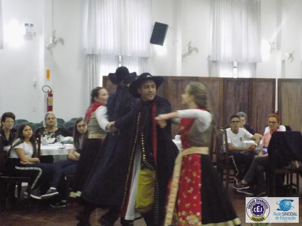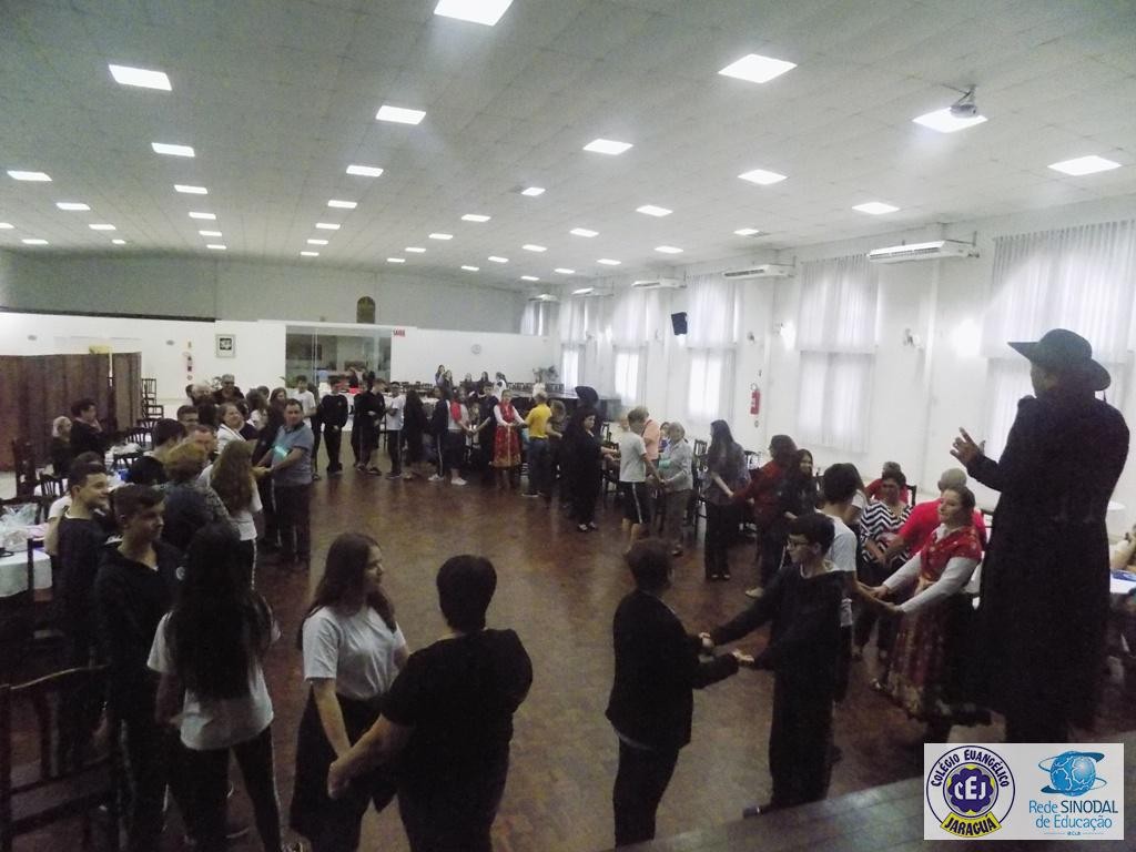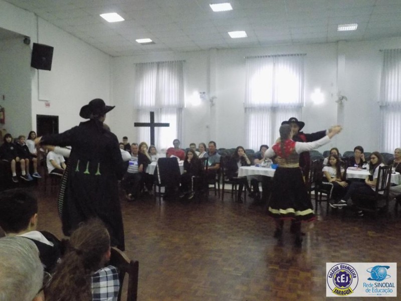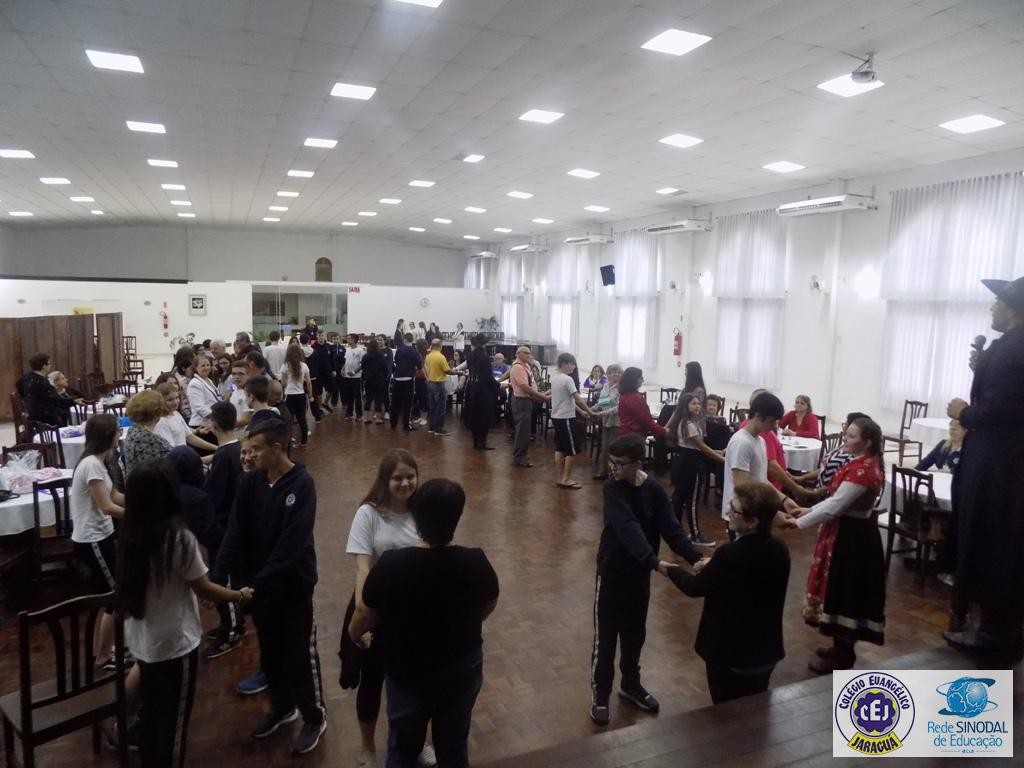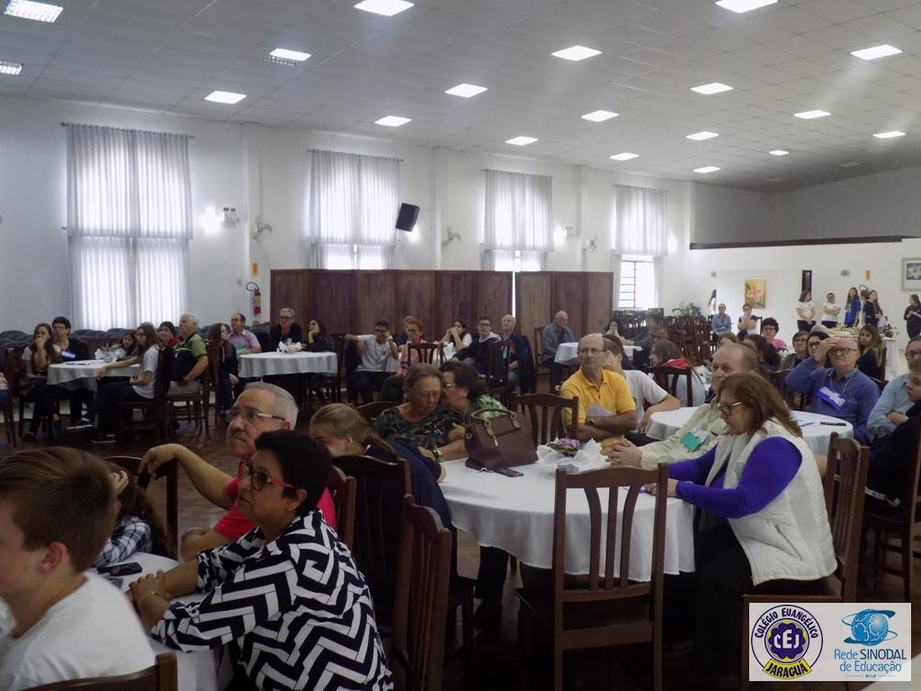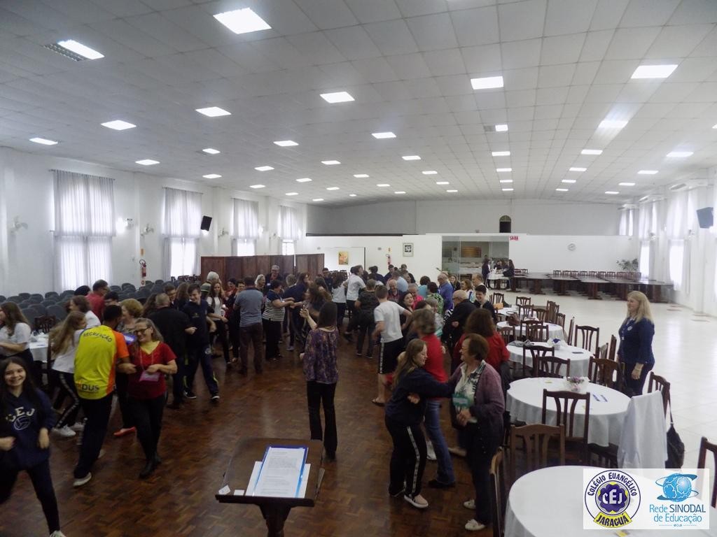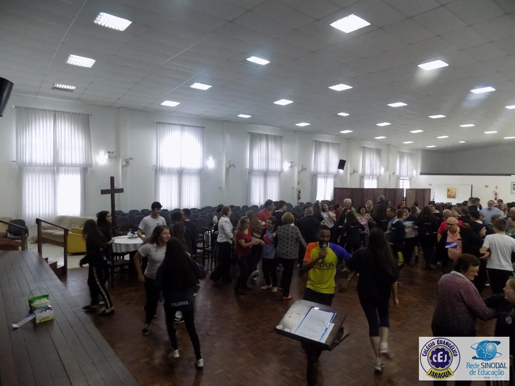 E como finalização do projeto ocorreu a tarde “Amo minha idade”. Evento carinhosamente planejado e elaborado para que alunos e avós vivenciassem momentos nostálgicos e raros, compartilhando histórias e extravasando emoções. O evento contou com a participação dos alunos dos oitavos anos, professores envolvidos e coordenação, profissionais da área da saúde e, logicamente, com as estrelas principais do evento: 39 avós. As atividades foram enriquecidas com muito conhecimento através do bate-papo com o orientador físico e recreador Professor Rafael Ramos, da Ludus Recreação, com o tema “corpo em movimento na terceira idade”, com a psicóloga Bárbara Bretzke conversando sobre “Mente feliz em todas as idades, principalmente na minha”e com a nutricionista Amandha Bernardi abordando o tema “Chás e alimentos benéficos para a melhor idade”.