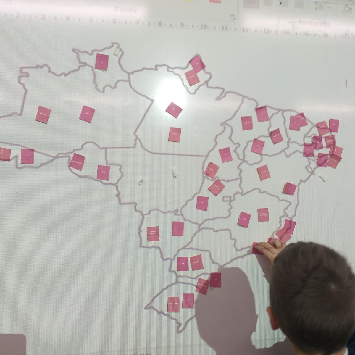 Mais notíciasO 4⁰ ano A, da professora Suzana Rosá, explorou através de jogos da memória, os estados e as capitais brasileiras. Aceitaram o desafio proposto pela professora e se organizaram em equipes para uma mini gincana, com o objetivo de averiguar a rapidez da memória 🧠 Colagem no mapa e muita adrenalina para completar o nosso queridinho, o mapa do Brasil político 🥰💙💛