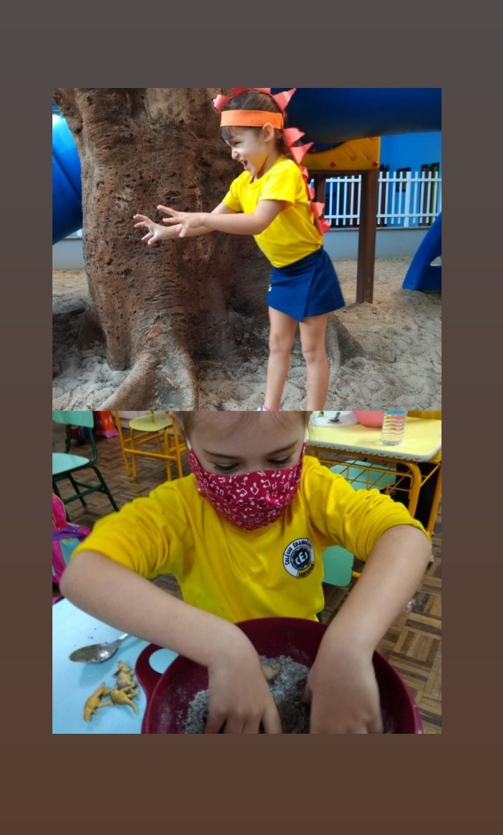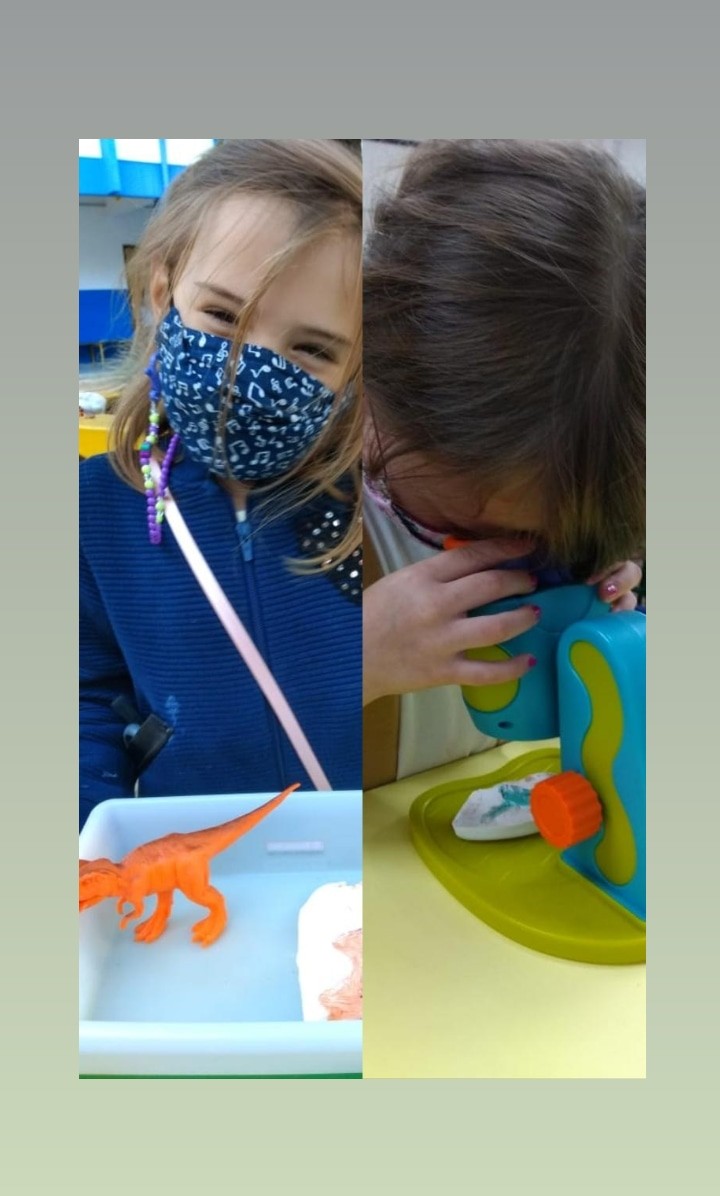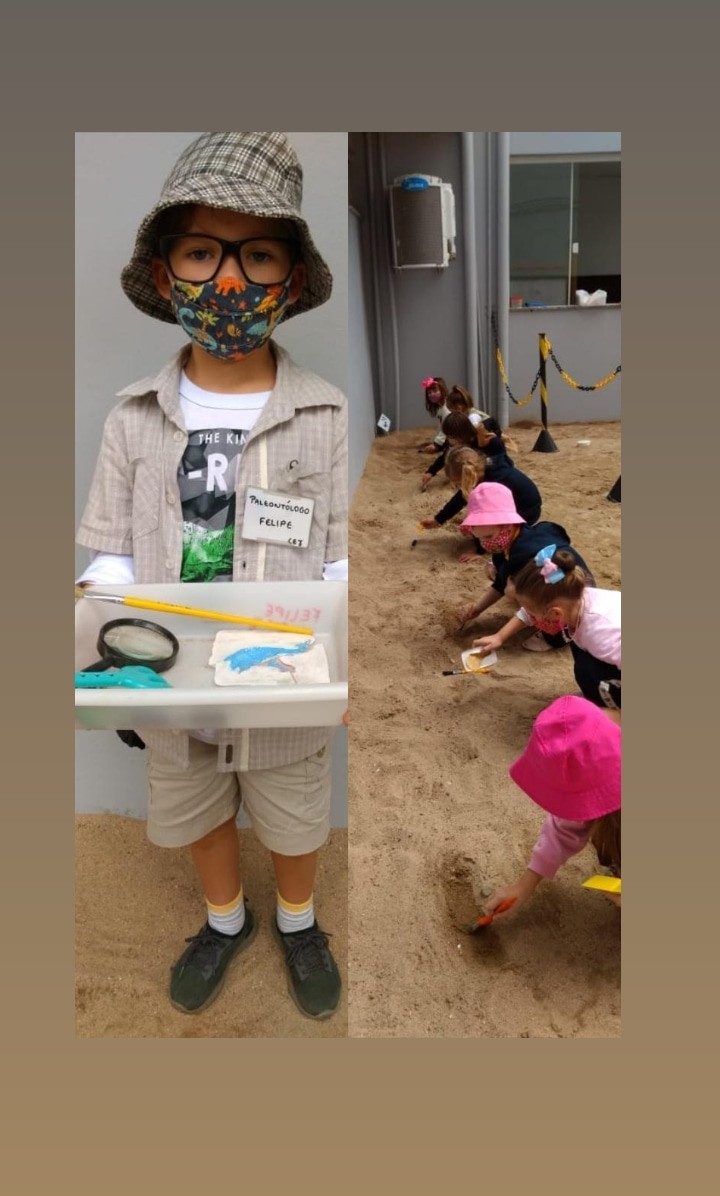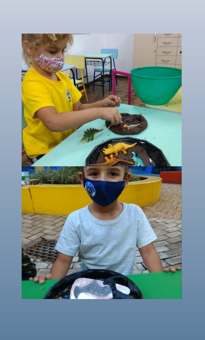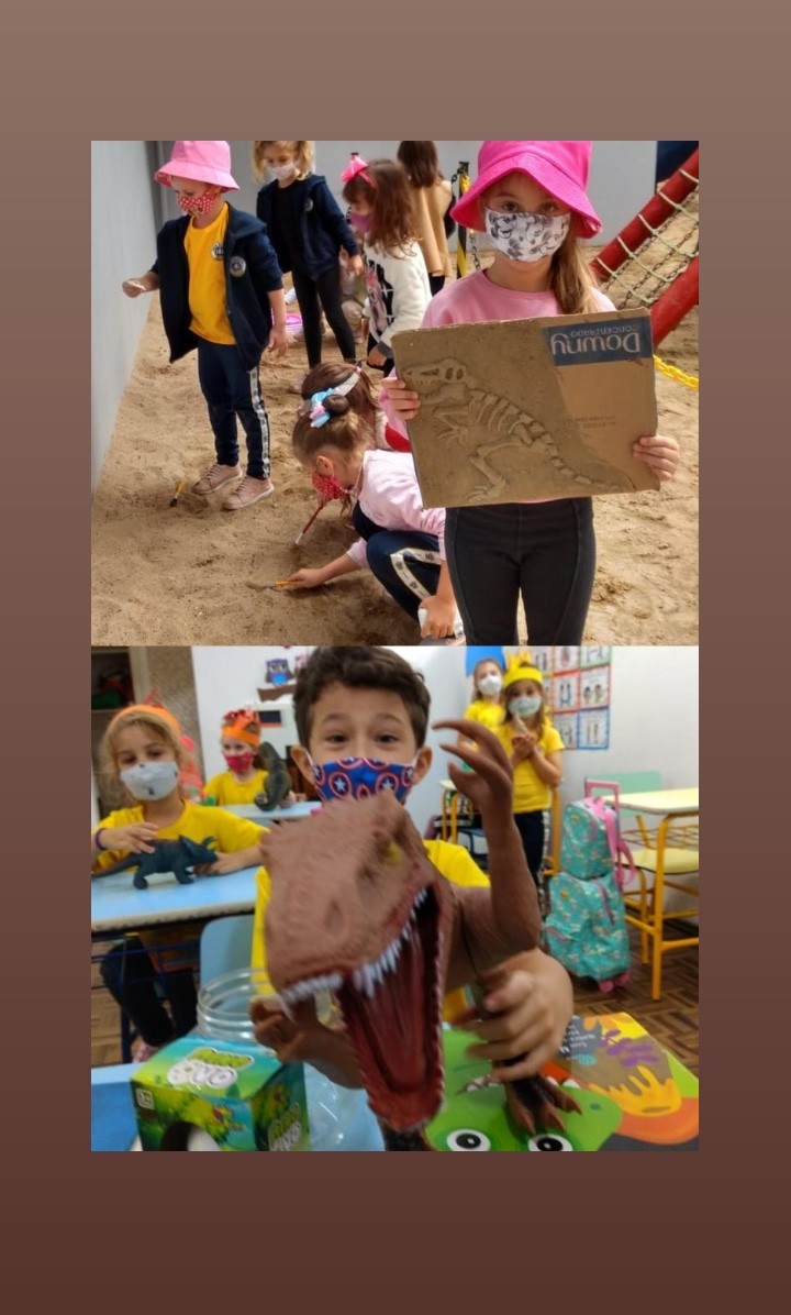 Mais notíciasNo mês de maio, os alunos do Infantil 4 adquiriram conhecimento sobre a ideia de que o planeta Terra e a vida que nele ocorre mudam com o passar do tempo. Iniciamos com uma linha do tempo simplificada, que evidencia as primeiras formas de vida nos oceanos até o fim da ¨era dos dinossauros¨. Realizamos rodas de conversas que contribuíram para as crianças construíssem mentalmente algumas noções sobre como era o planeta “antes de hoje”.