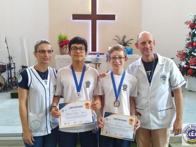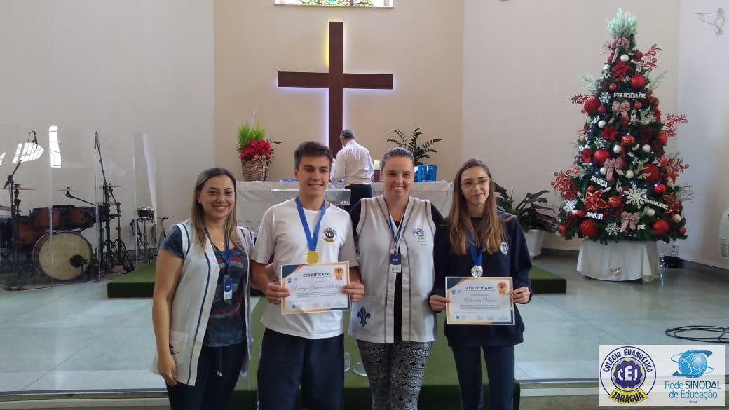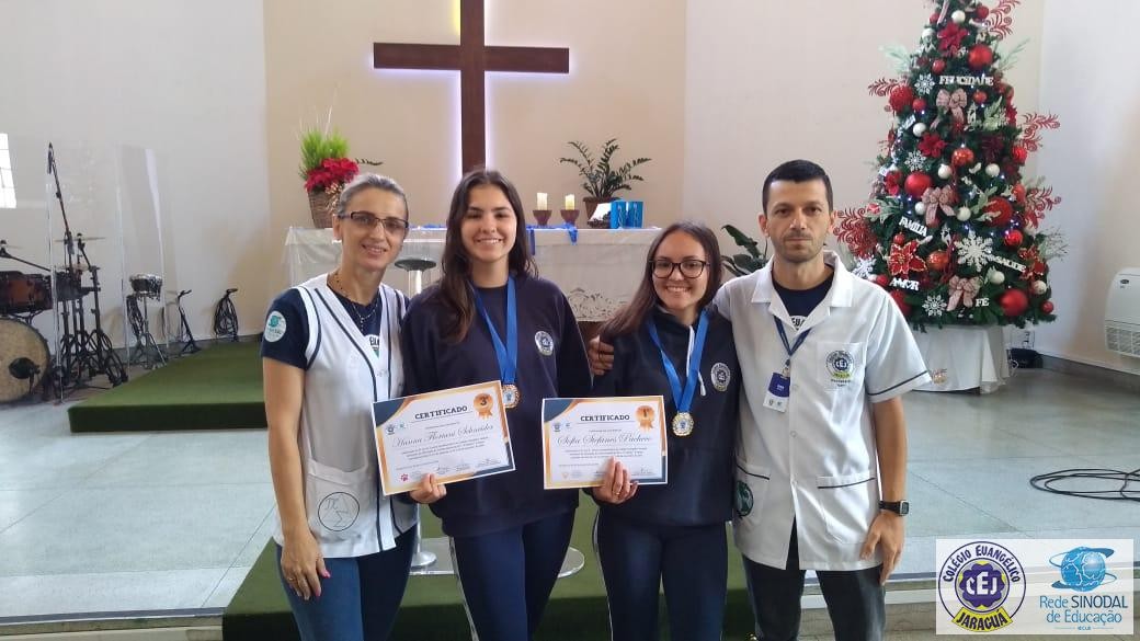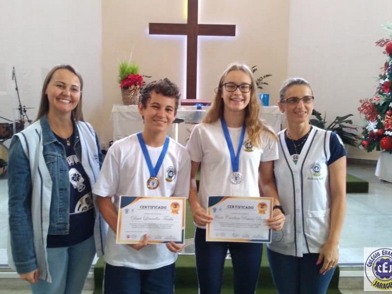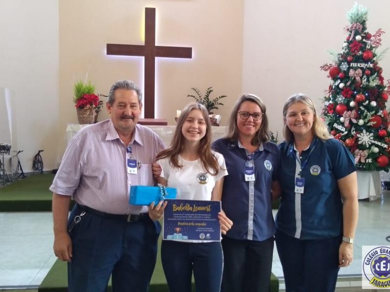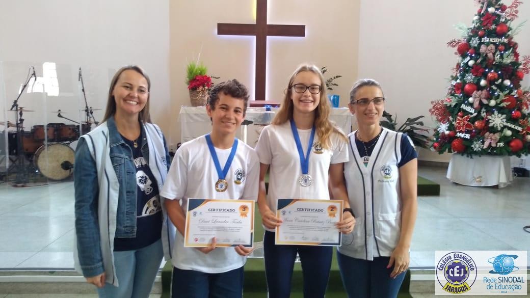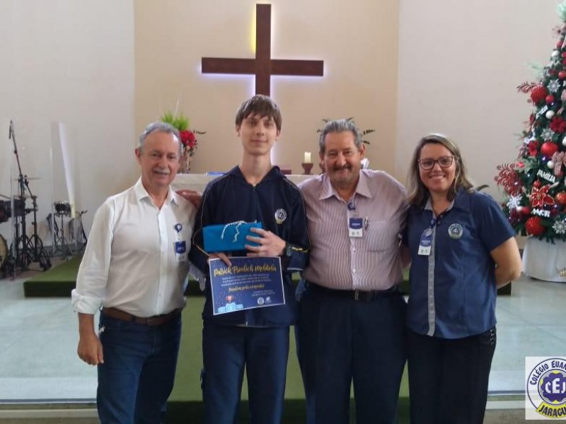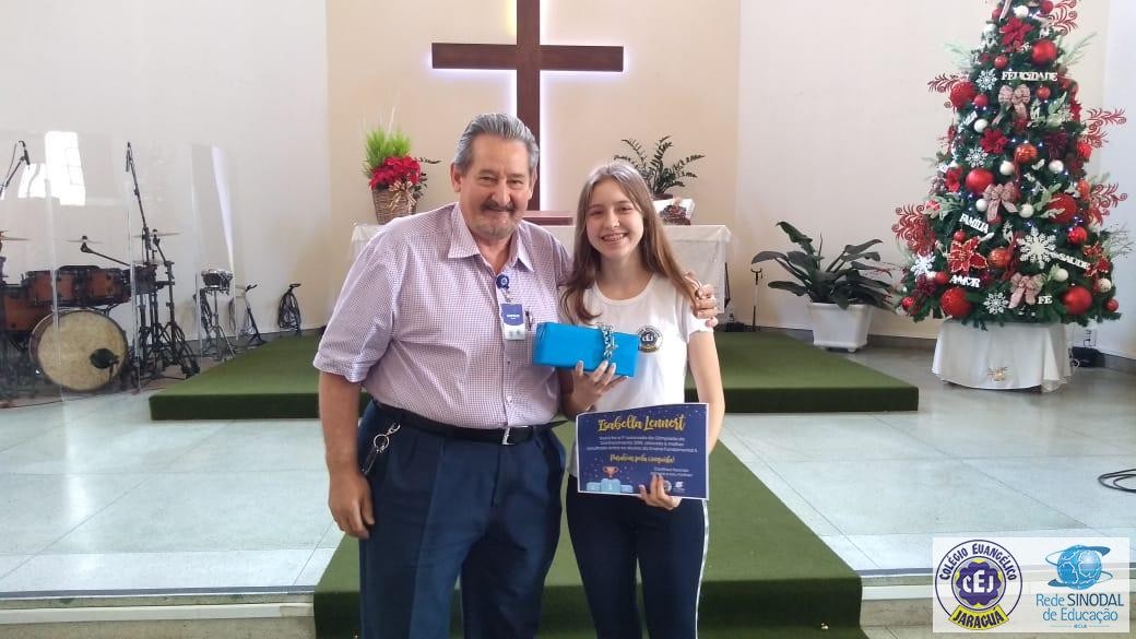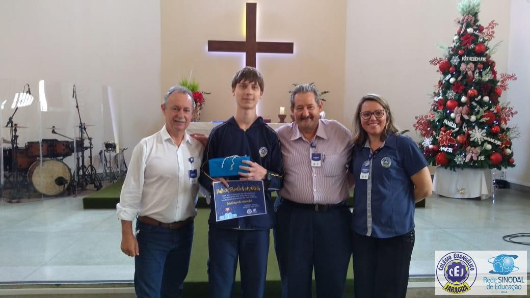 Os melhores alunos do ano foram: Isabella Lennert ( 8º ano B) e Patrick Froelich Meldola (2º ano B Ensino Médio).