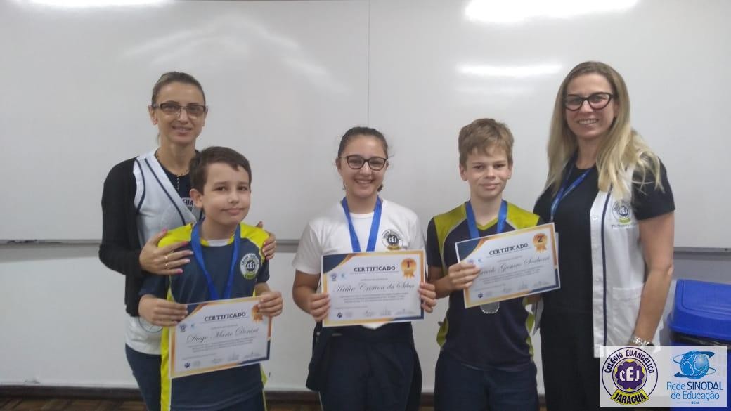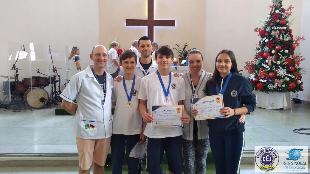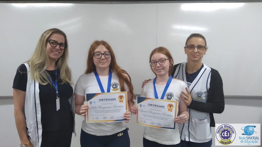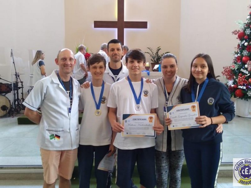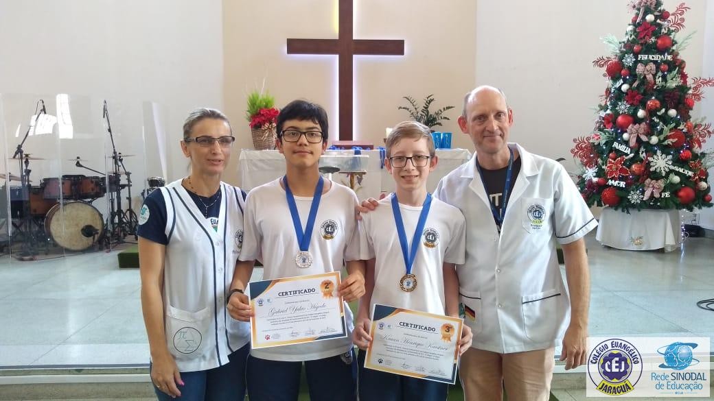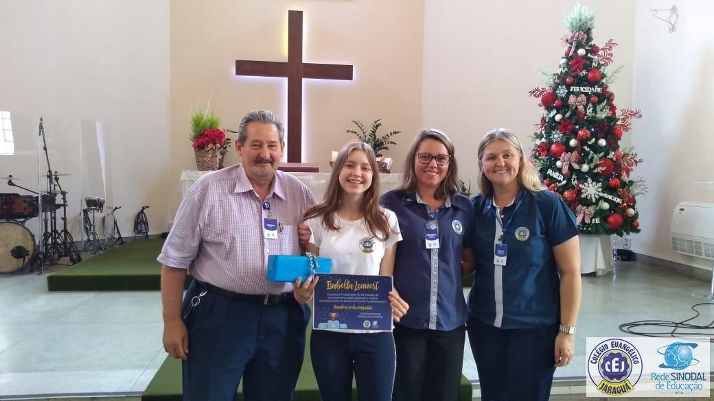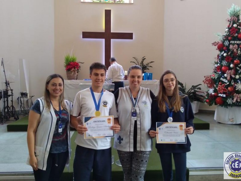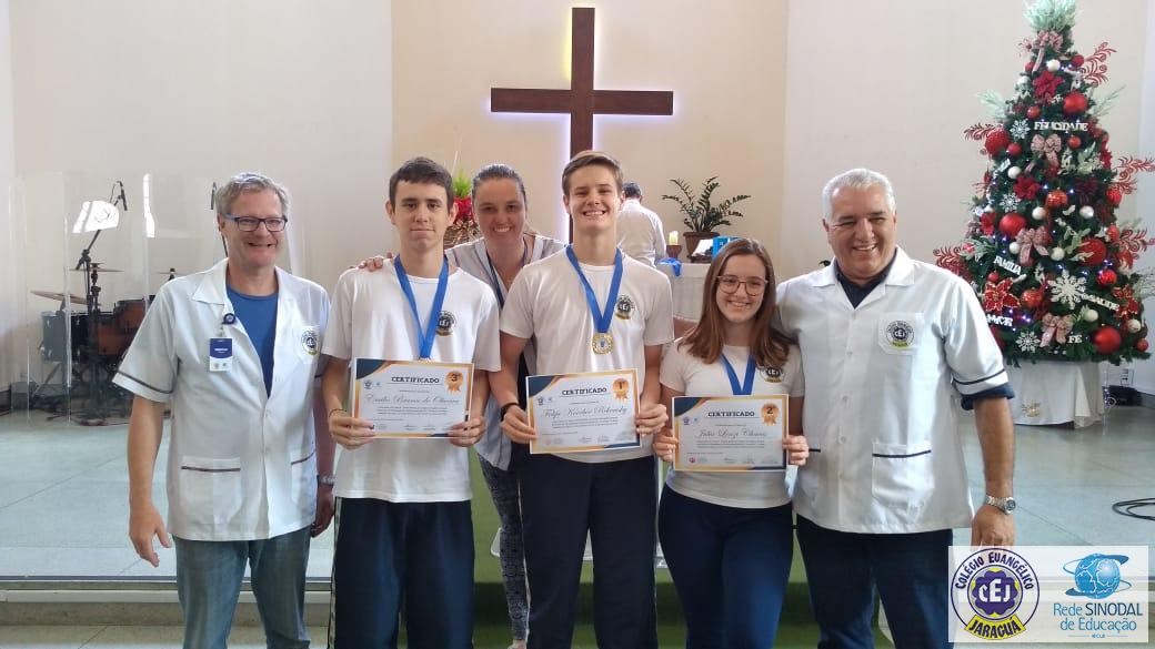 Os melhores alunos do ano foram: Isabella Lennert ( 8º ano B) e Patrick Froelich Meldola (2º ano B Ensino Médio).