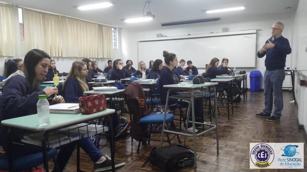 Mais notíciasComprometido em oferecer suporte para a importante escolha profissional, o CEJ recebe a cada sexta-feira um convidado especialmente para falar sobre sua profissão. Este ano já recebemos representantes do direito, medicina, biologia, jornalismo, e muitos outros. Na foto, Giovanni Sidney Tonet, respondendo as perguntas sobre a odontologia em sua visita dia 14 de setembro. Nosso muito obrigado a todos os profissionais que aceitaram nosso convite.