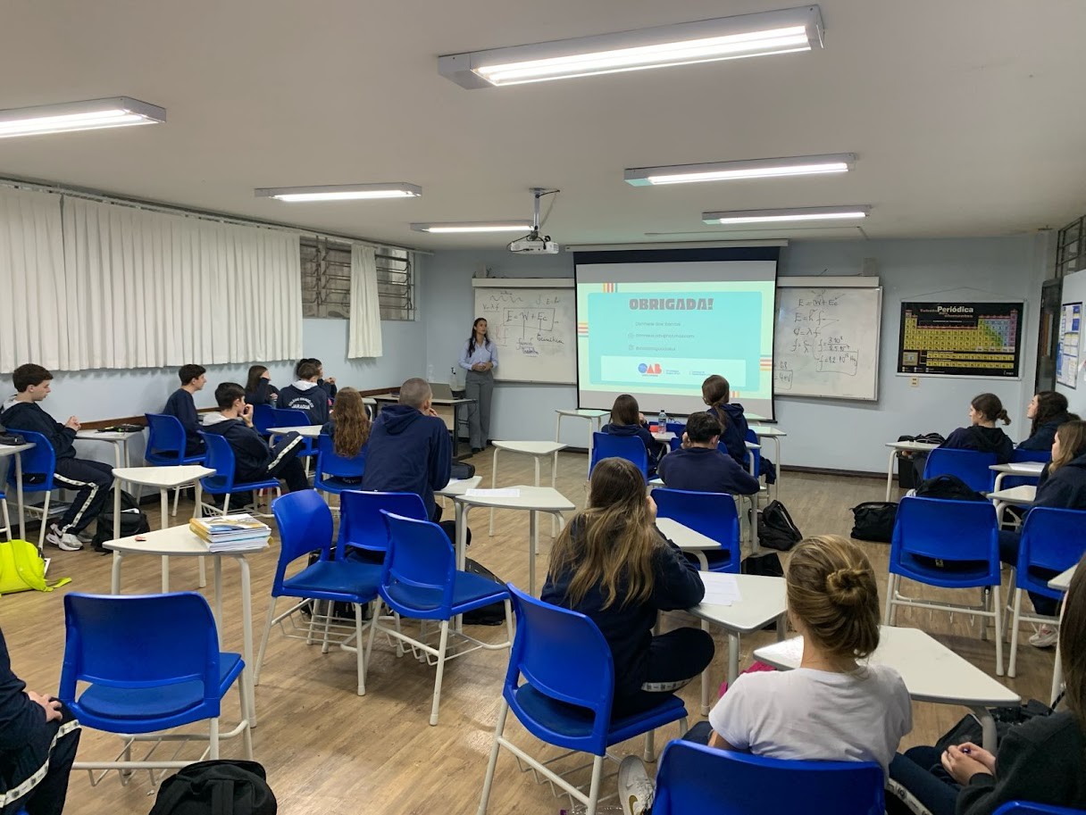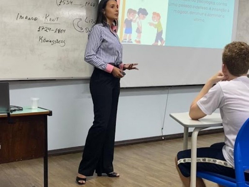 Os alunos dos 1° e 2° anos do Ensino Médio receberam a visita especial da advogada Danniele dos Santos, da OAB