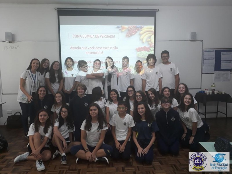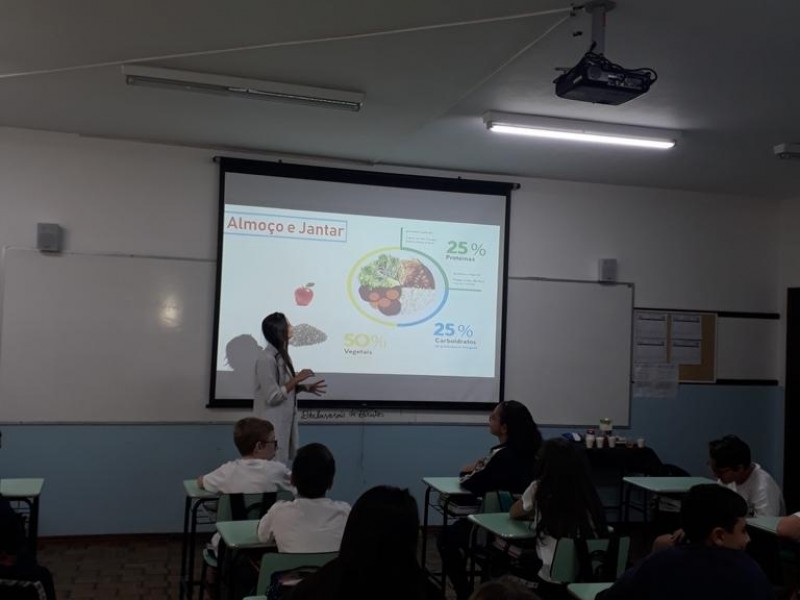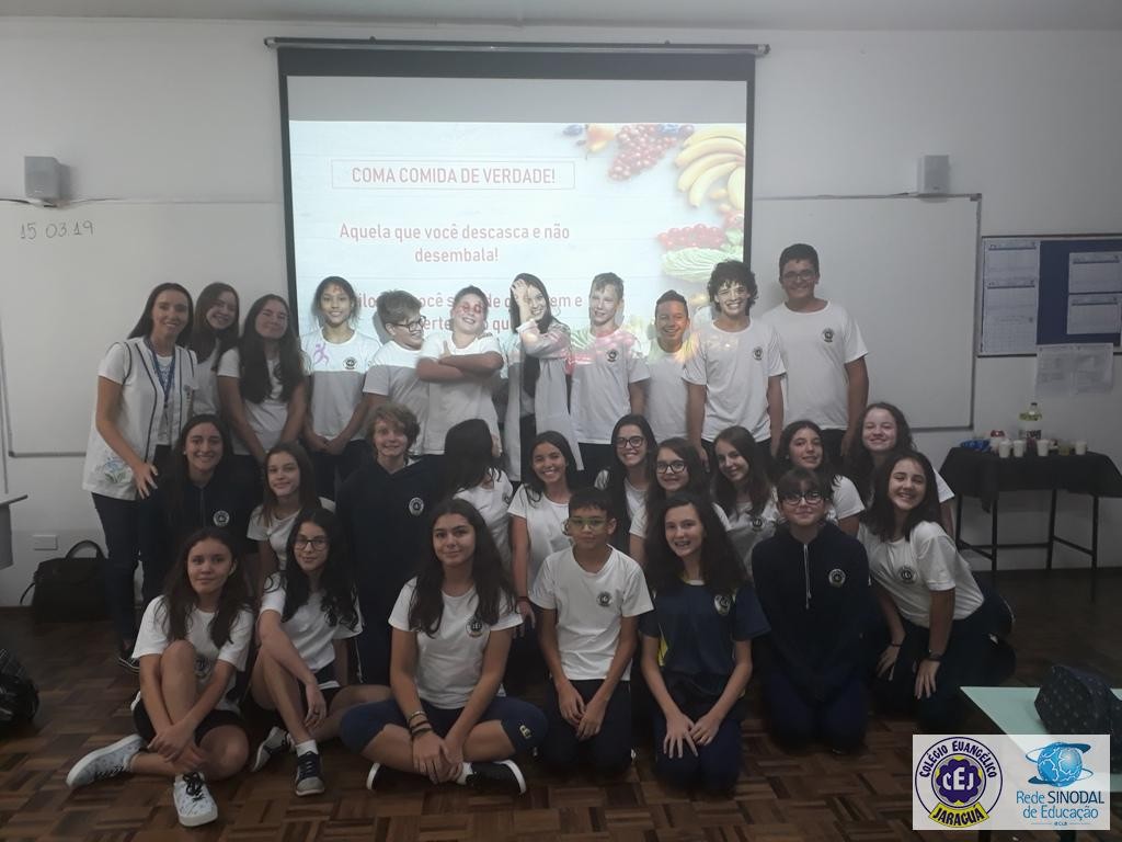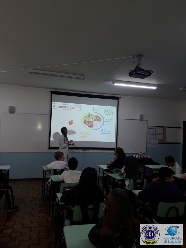 Mais notíciasNa disciplina de Ciências/Biologia com os 8ºs anos, a professora Fernanda Raulino trabalhou o conteúdo sobre nutrição e, para aprimorar os conhecimentos, os alunos tiveram no dia 15 de março uma palestra sobre a alimentação saudável com a Nutricionista Amandha Bernadi (ex aluna do Colégio Jaraguá).