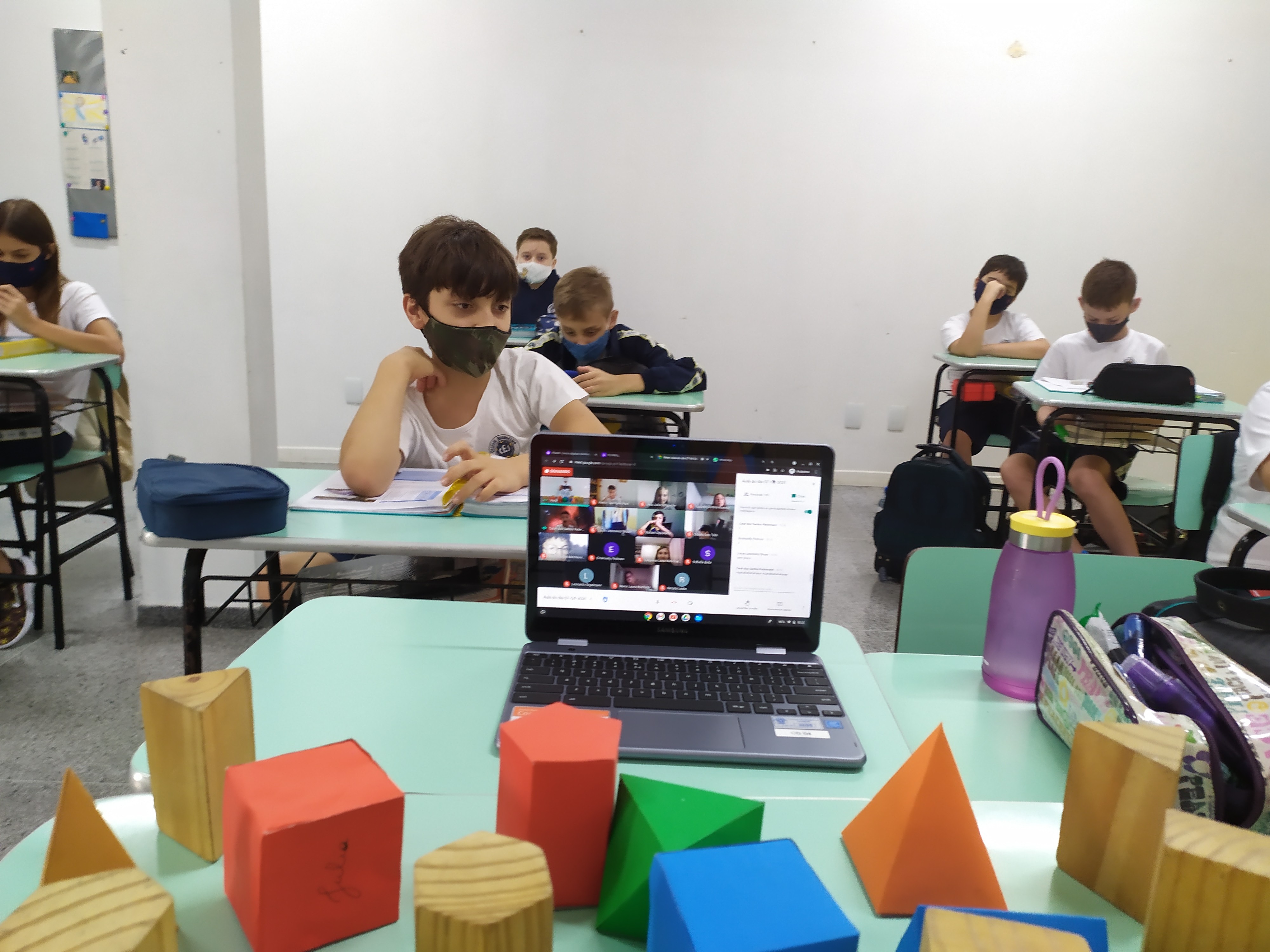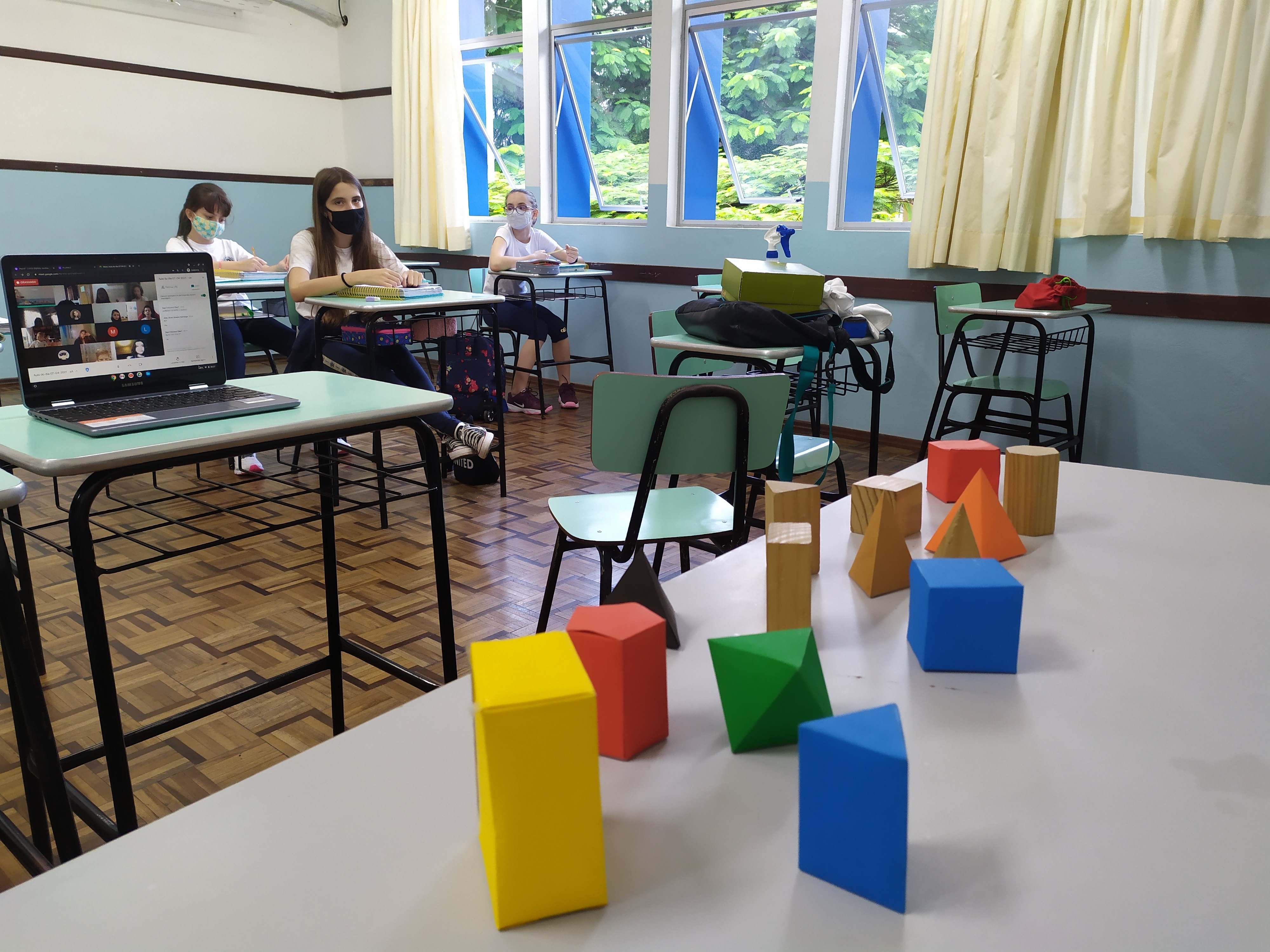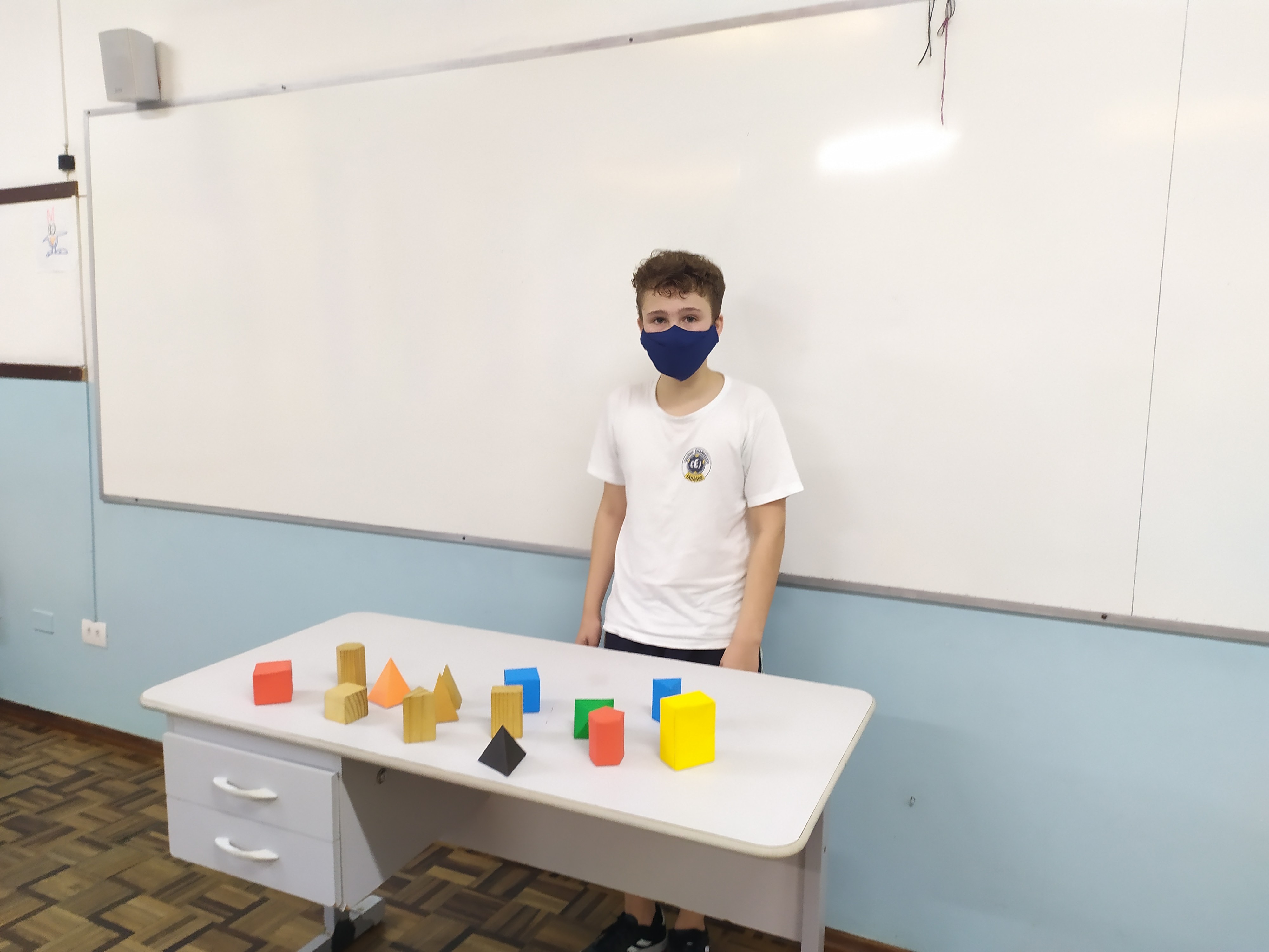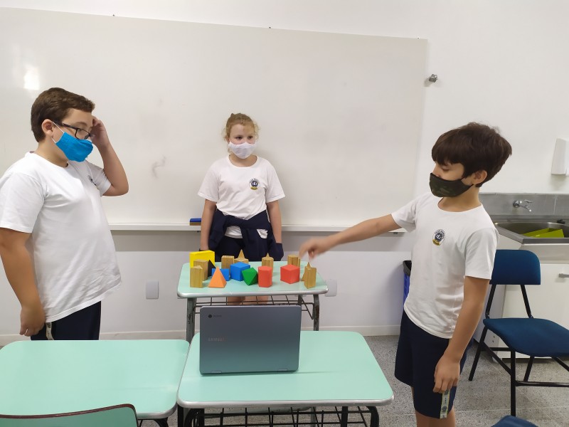 Durante o mês de março foi trabalhado o conteúdo de poliedros na aulas de Matemática dos 6ºs anos A e B. Durante as aulas foram levados vários tipos de sólidos, onde através do material concreto os alunos faziam suas apresentações , respondendo aos questionamentos orientados pela professora.