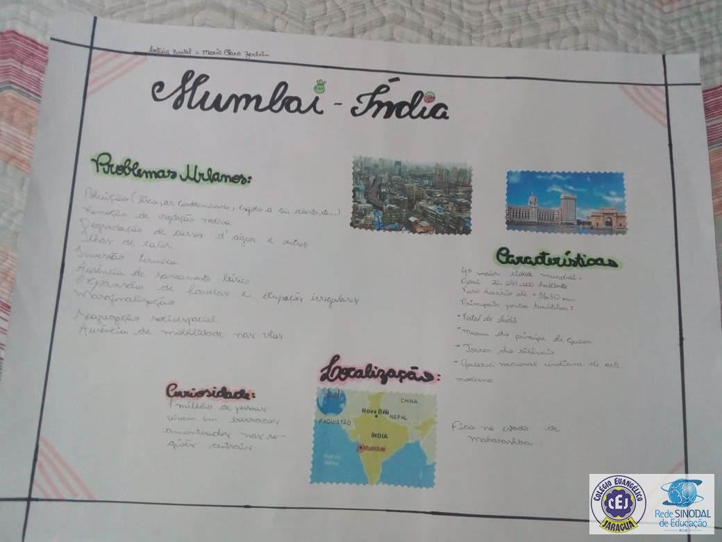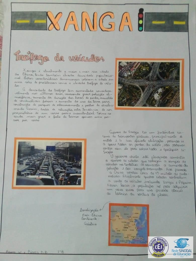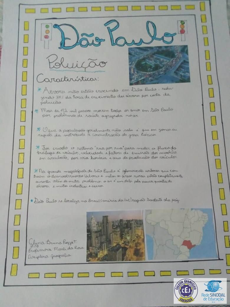 Mais notíciasCom o objetivo de identificar os principais problemas ambientais urbanos enfrentados pelas megacidades em decorrência do crescimento urbano, os alunos dos 7ºs anos A e B desenvolveram estudos com o tema “Mundo Urbano”. Os resultados foram sintetizados em cartazes, enfatizando os principais problemas ambientais, suas causas e consequências
