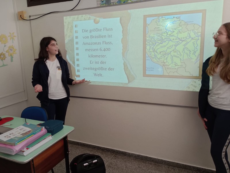 A partir deste projeto, foi lançado o desafio, para que os alunos pudessem encontrar três superlativos no nosso País. Desta forma, os alunos pesquisaram e elaboraram os trabalhos em alemão e socializaram o aprendizado com a turma.