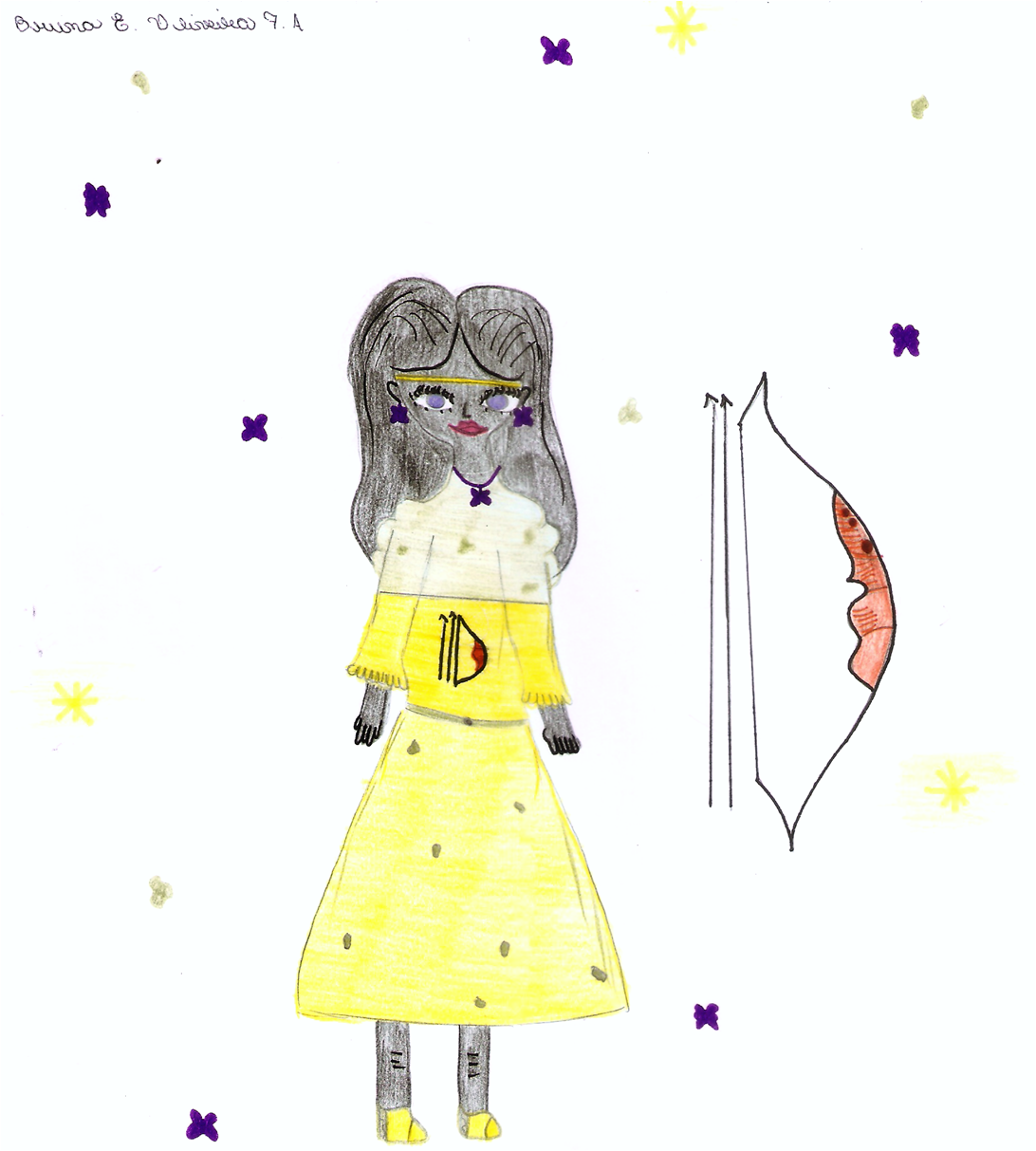 Tendo como referência os deuses gregos, os alunos do 7º ano A e B na disciplina de Língua Portuguesa, sob orientação da professora Jucelenecriaram um herói/heroína do século 21.