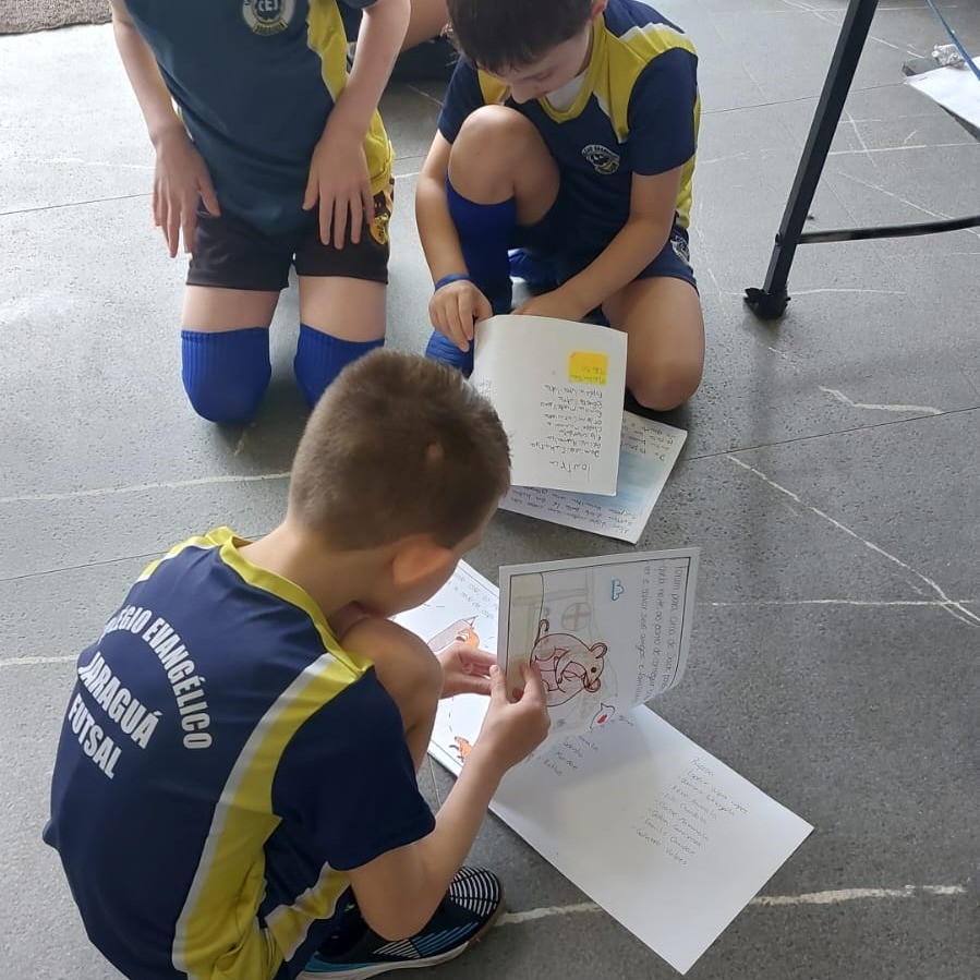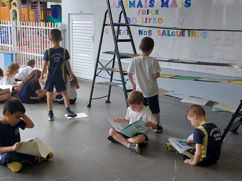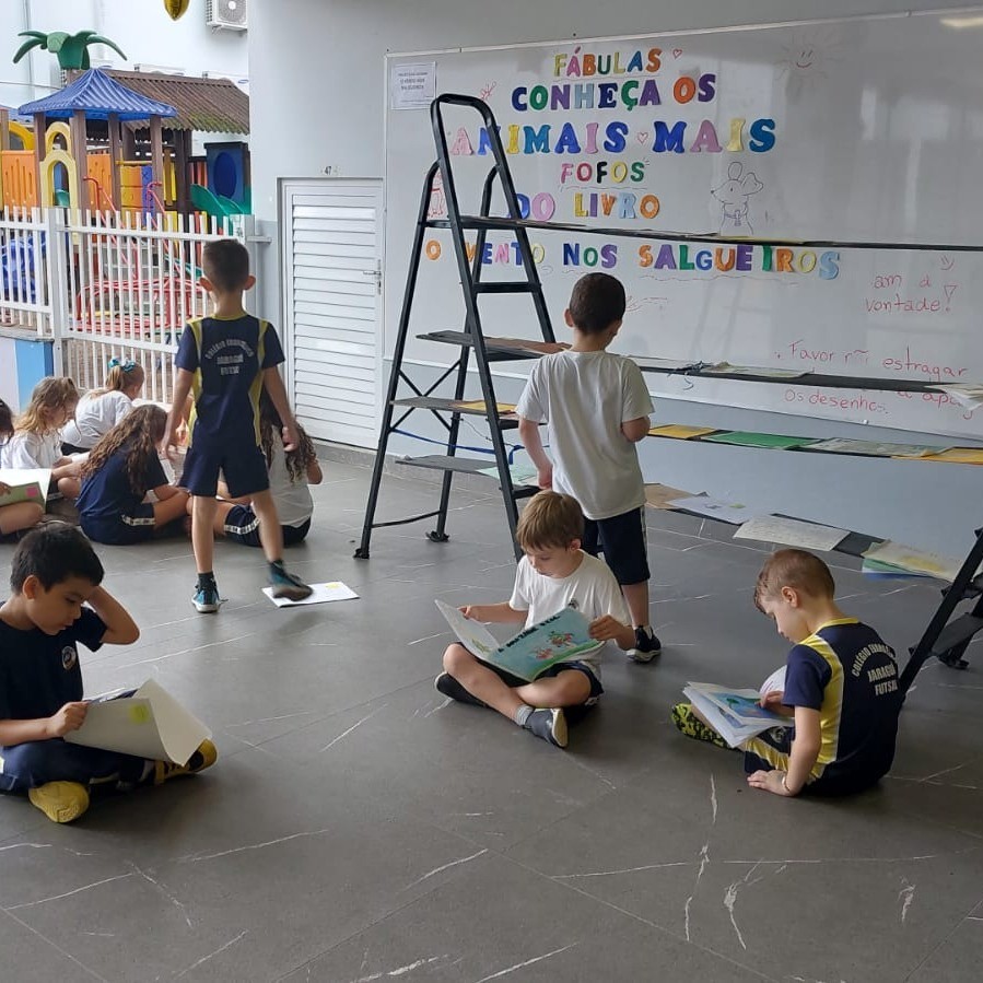 Ao término dessa etapa, os livros produzidos foram expostos, permitindo que os alunos do Fundamental I pudessem manusear e ler as fábulas à vontade. Na última página do livro, houve a colaboração da disciplina de Ciências, na qual os alunos catalogaram os animais que protagonizaram suas fábulas.