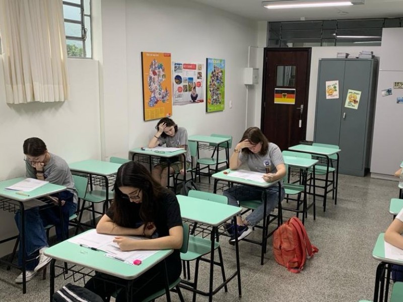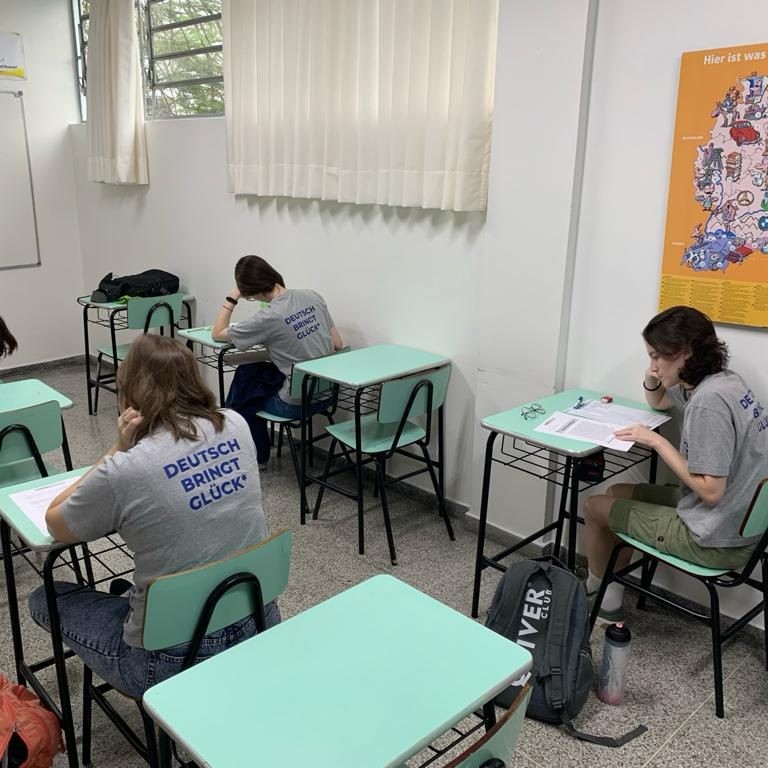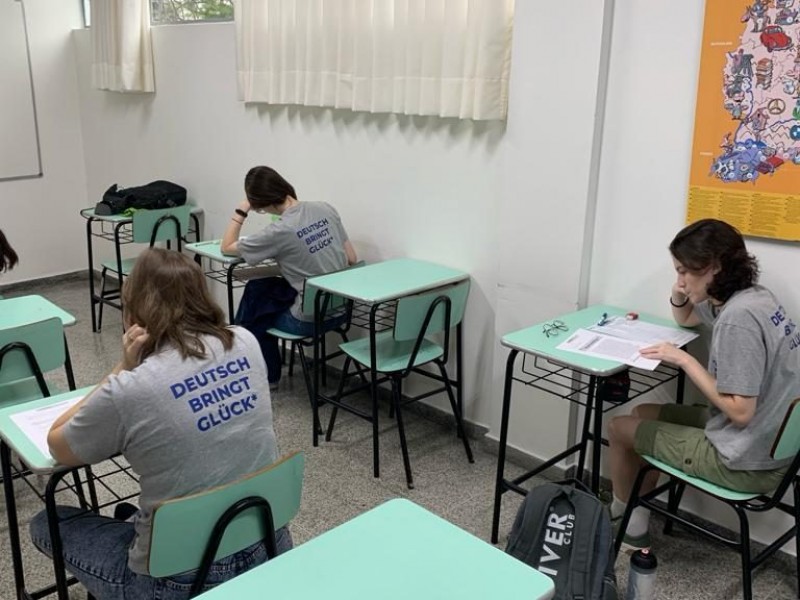 Mais notíciasNeste mês de novembro, entre os dias 13 e 16, os alunos do Colégio Evangélico Jaraguá executaram as provas de proficiência de Língua Alemã, em cooperação com o Goethe-Institut através da Parceria PASCH. As provas Fit in Deutsch A1 e A2, bem como o Goethe-Zertifikat B1 foram oportunizados para mais de 50 alunos do Ensino Fundamental e Médio. A realização das provas é muito importante para promover a aferição de níveis e proporcionar mais um estímulo na aquisição do idioma alemão, uma vez que proporciona aprendizado pedagógico e desenvolve uma maior desenvoltura para sua utilização prática. São testadas quatro habilidades linguísticas nas provas da língua adicional: a leitura e a audição compreensiva, a escrita através de produções textuais e a oralidade. As certificações têm caráter internacional, que como chaves, abrem caminhos de intercâmbio intercultural, enriquecem currículos e viabilizam oportunidades profissionais vindouras. Desejamos aos alunos ótimos resultados pelo empenho e aprendizado, uma vez que as aprovações proporcionam diversas benesses.