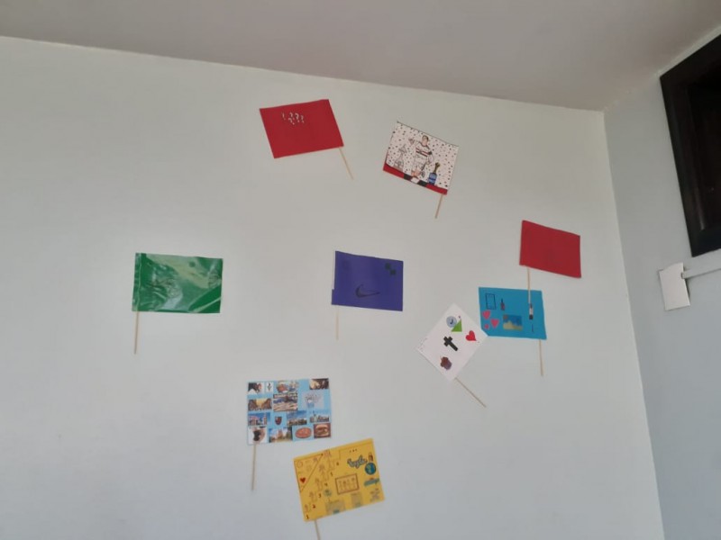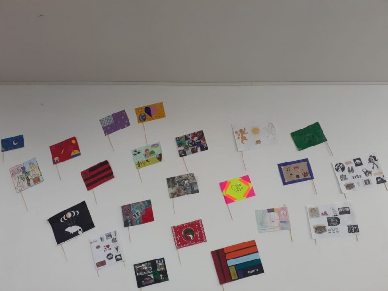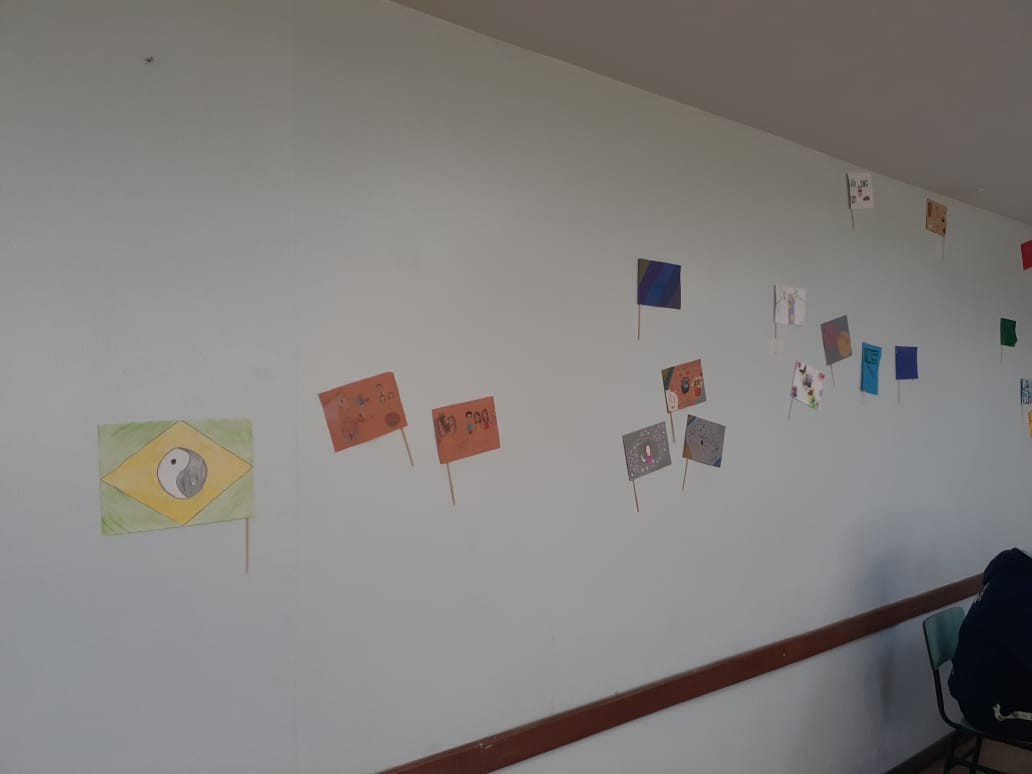 Cada estudante recebeu o desafio de criar uma bandeira que o(a) represente. Para cumprir o desafio é necessário fazer uso de criatividade.
