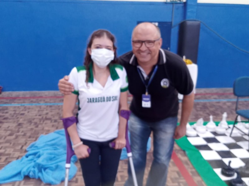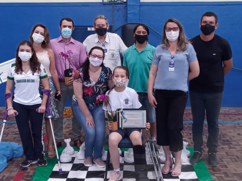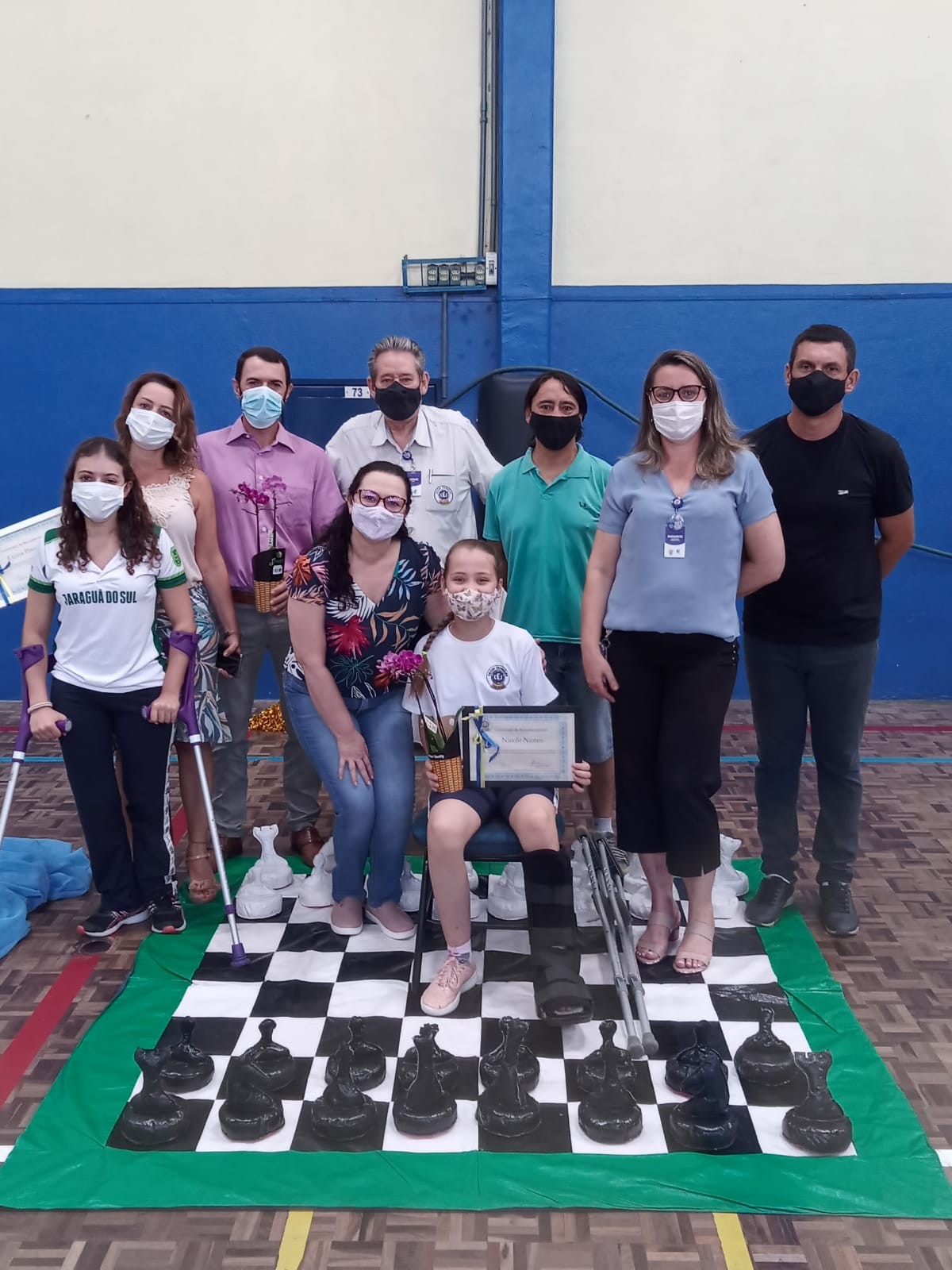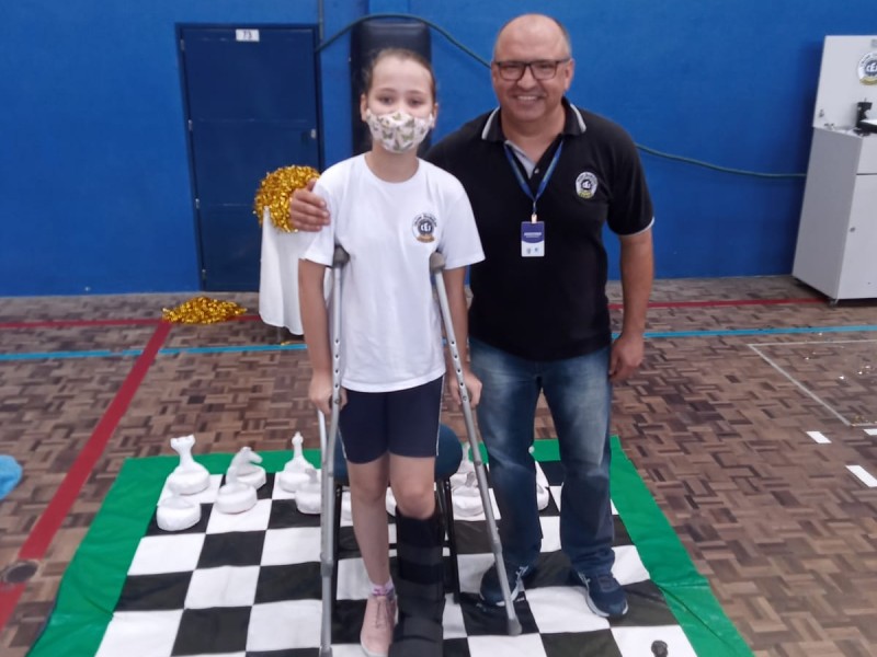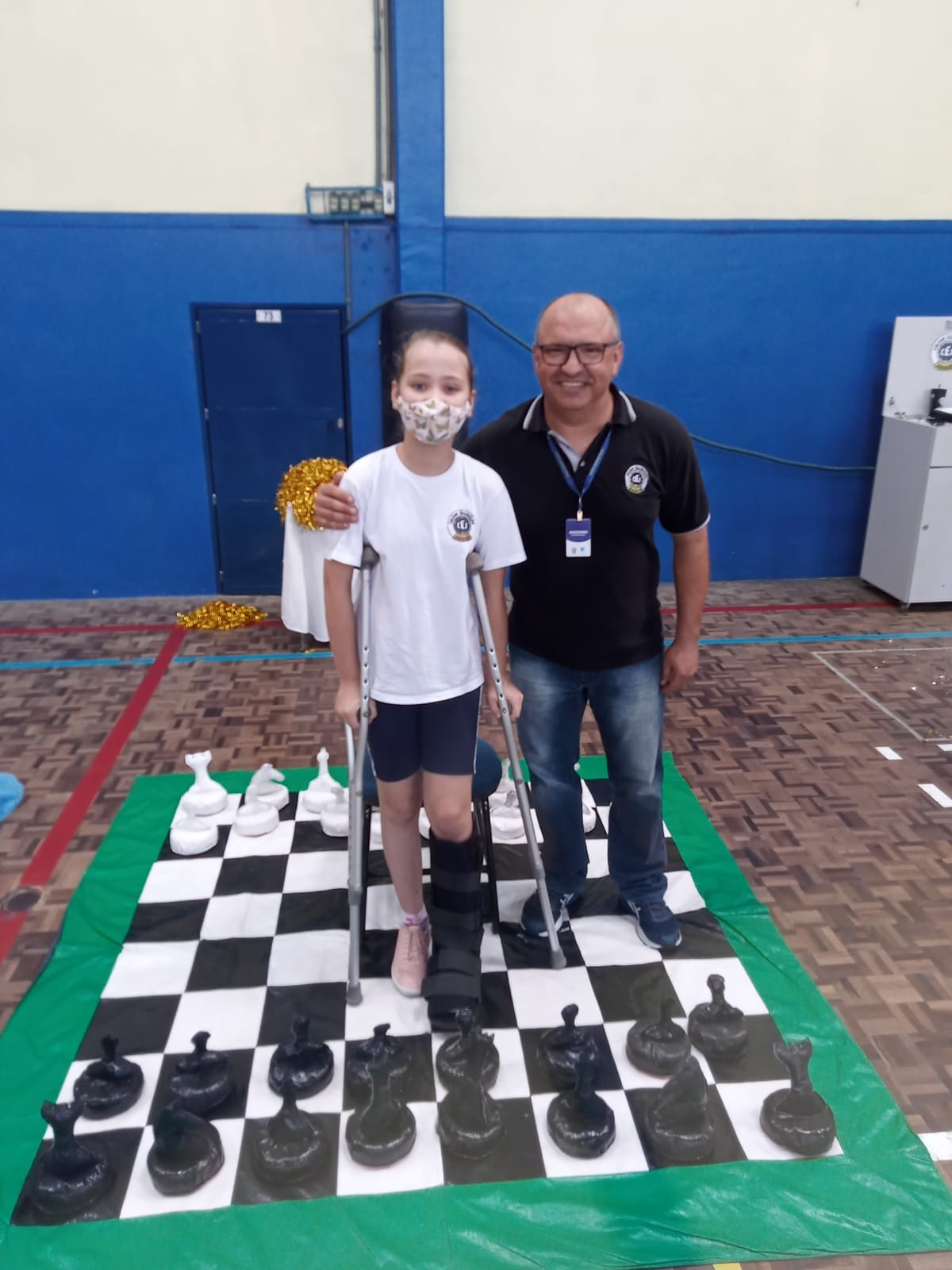 A aluna Nicole Nunes é aluna/atleta do xadrez e estuda no 5º ano/EF.