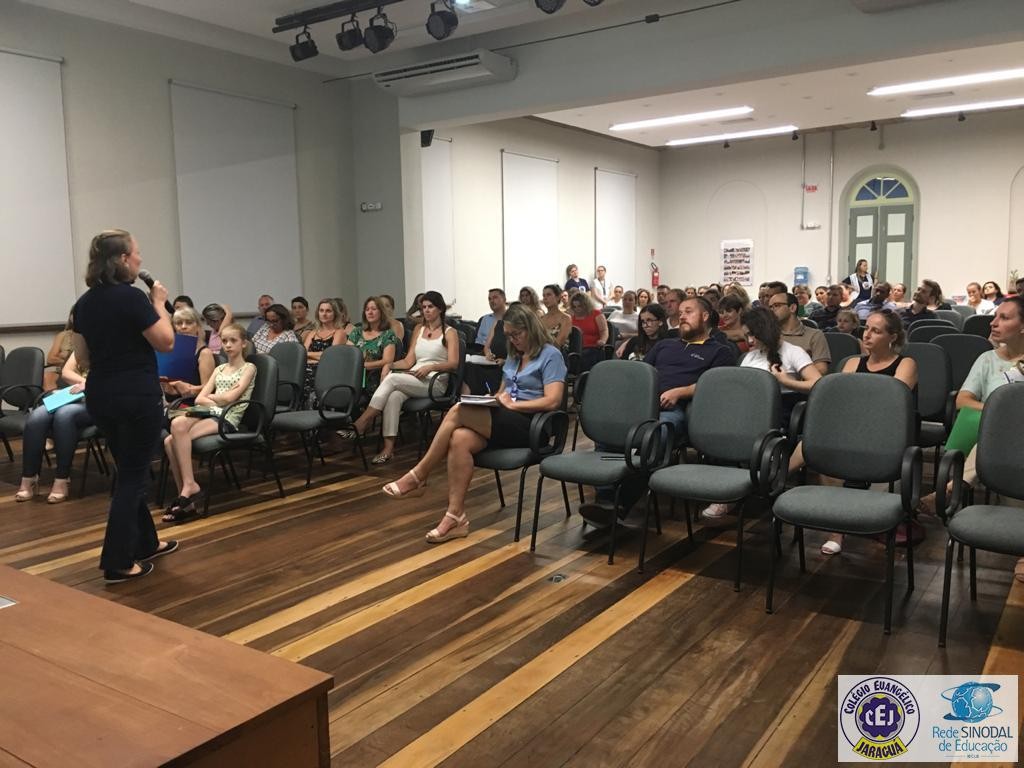 Você reconhece o sorriso do seu filho? E o olhar? Com essa pergunta os pais dos alunos do 6º ao 9º ano do Colégio Evangélico Jaraguá foram recebidos nas reuniões dessa semana. Após o desafio de encontrar seu filho (a) pela imagem do sorriso ou olhar, a professora Luciane Zimmermann trouxe importantes reflexões, sensibilizando para detalhes que podem passar despercebidos. Na pauta da reunião também constaram assuntos diversos, fundamentais para a organização do ano letivo.