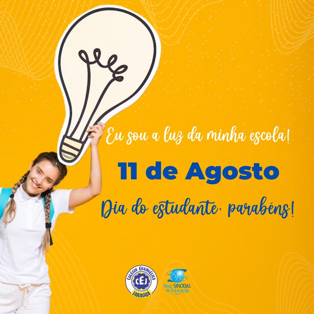 Hoje no dia do estudante, nós, professores e funcionários do Colégio Evangélico Jaraguá queremos parabenizar todos vocês, nossos alunos, desejando que seus caminhos sejam sempre repletos de LUZ!