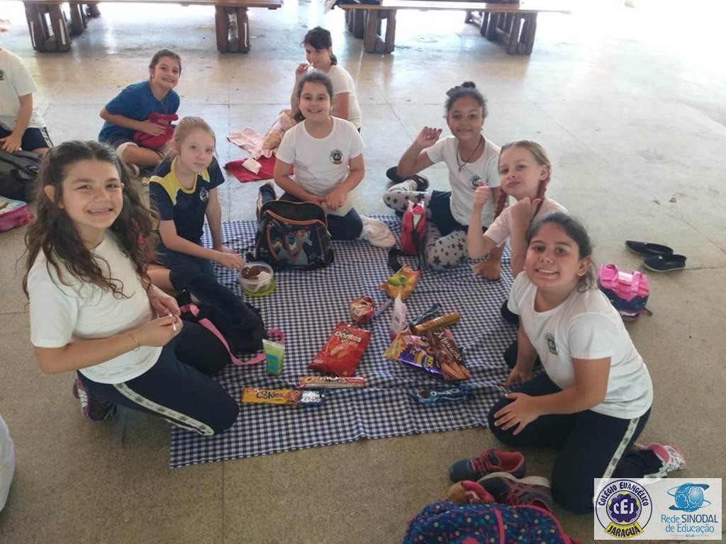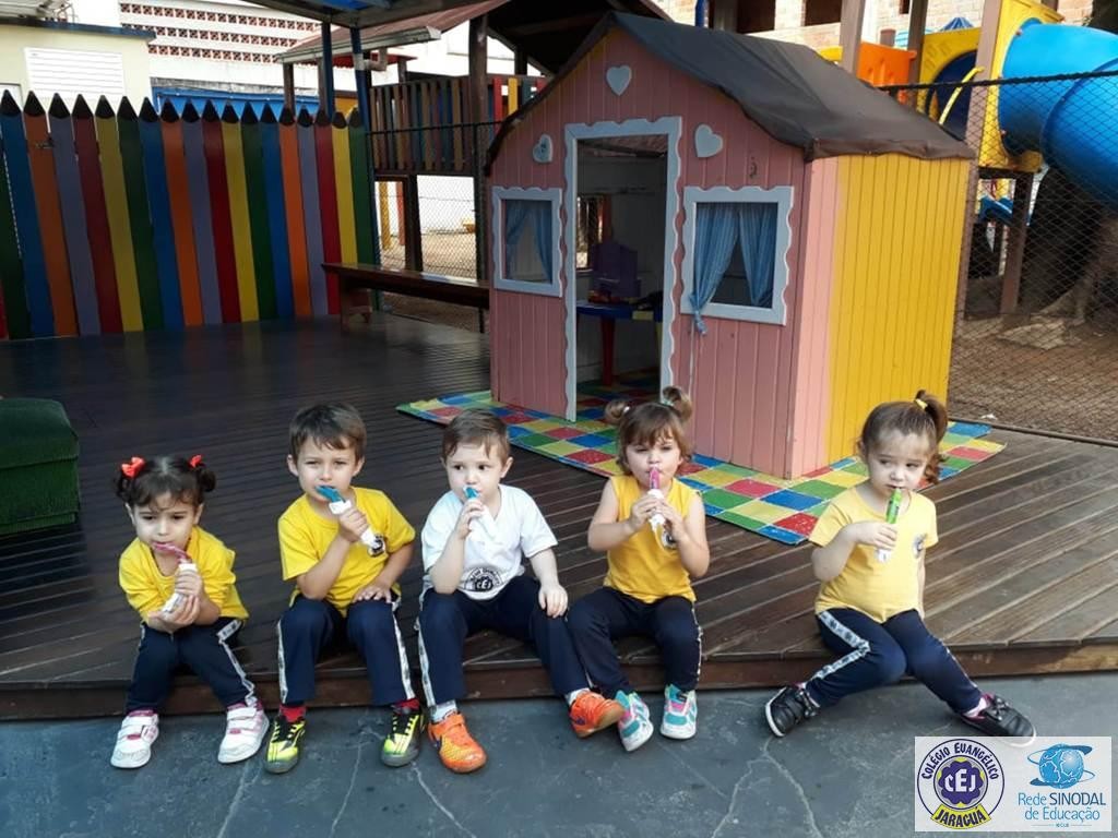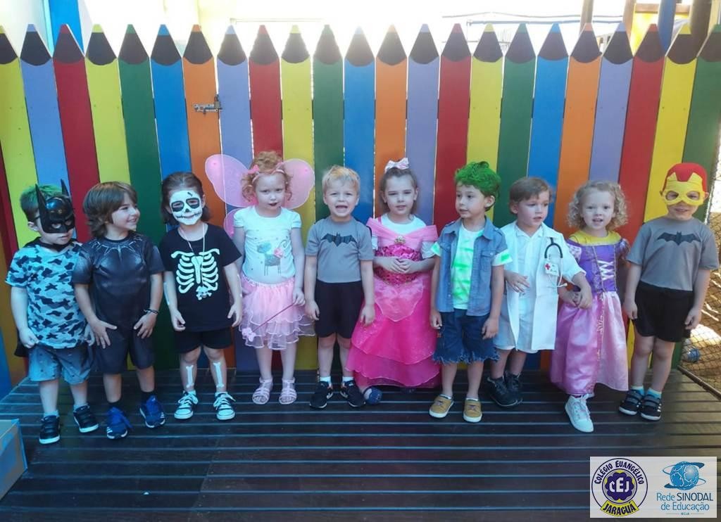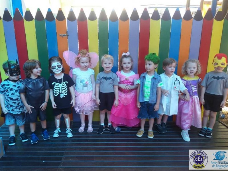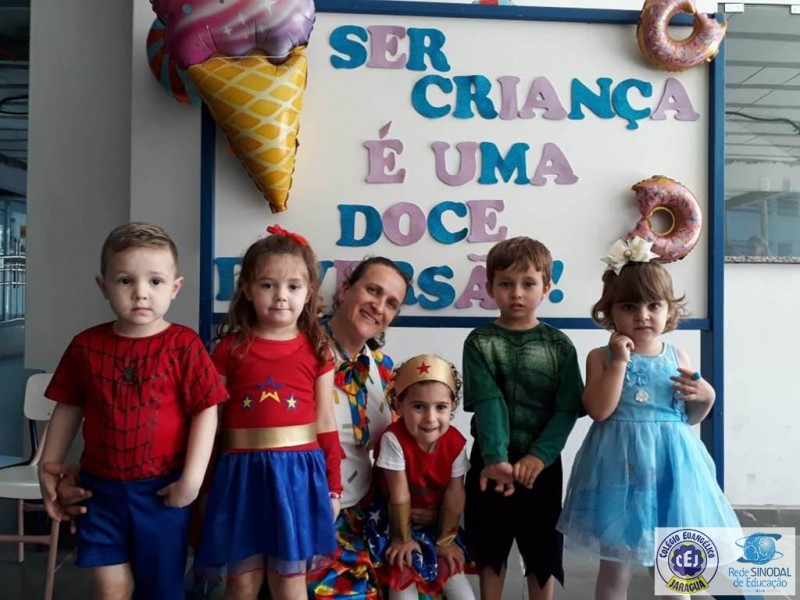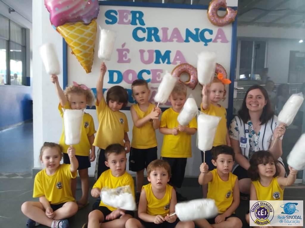 Rimos, brincamos, cantamos, fomos passear, fizemos piquenique, mostramos nossos talentos, nos “disfarçamos” cada qual com seu personagem, comemoramos, festejamos e sim, comemos doces, muitos doces, afinal de contas “Ser criança é uma doce diversão”