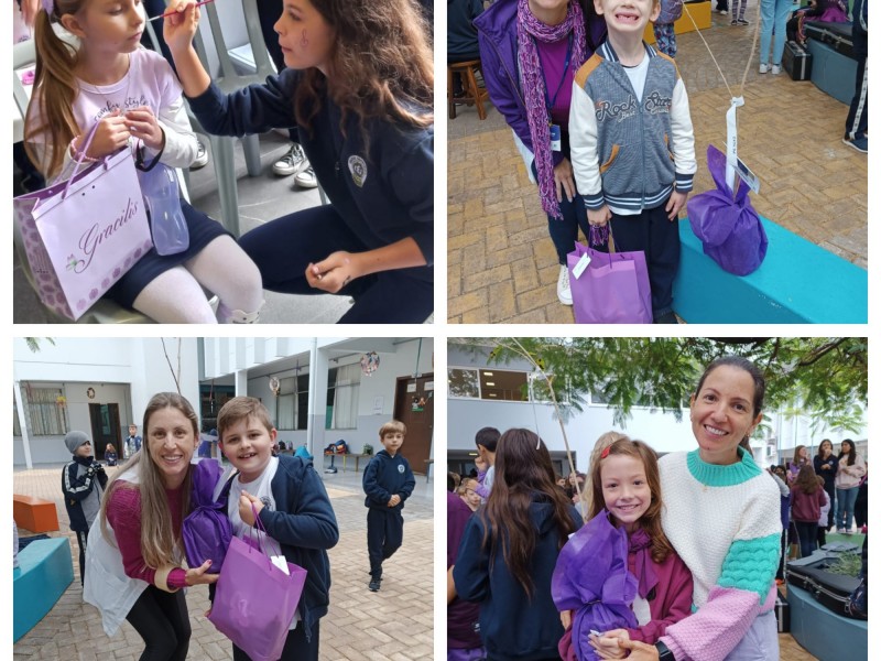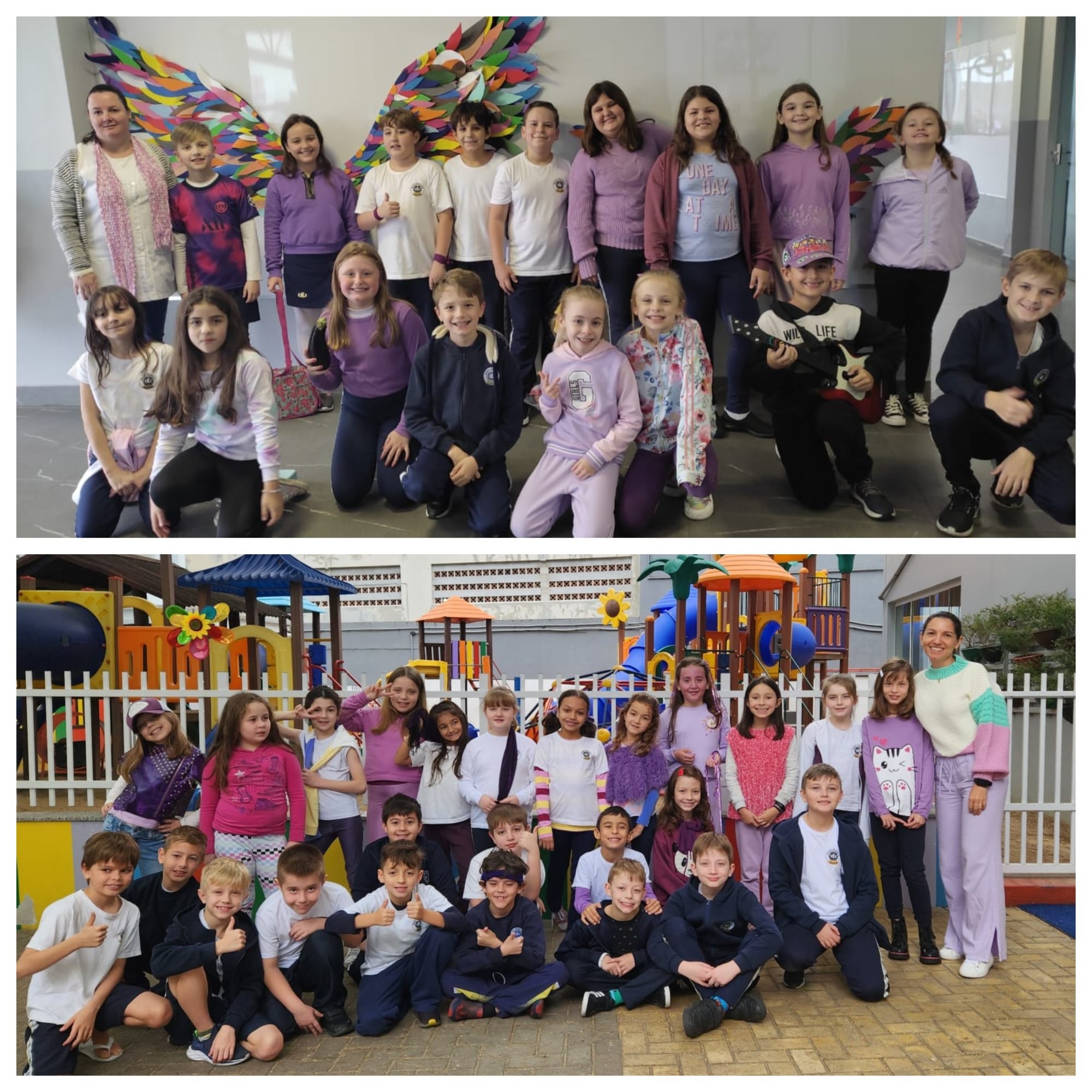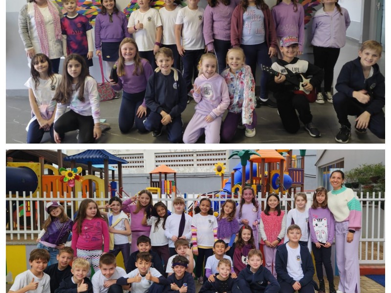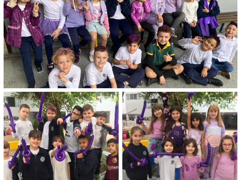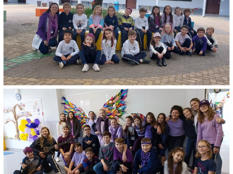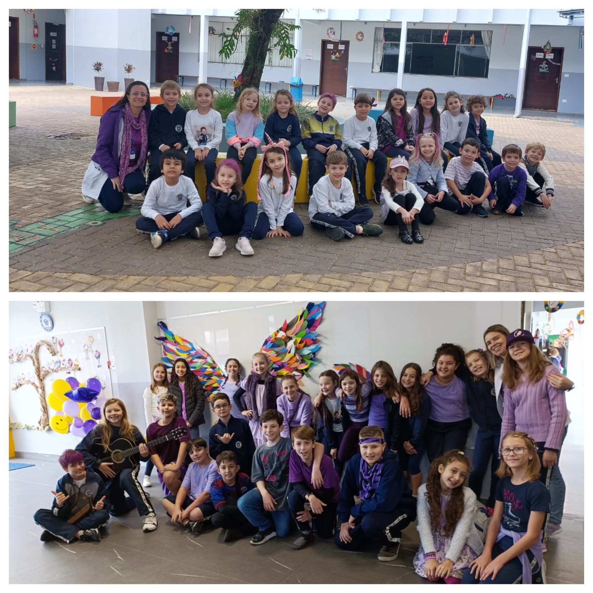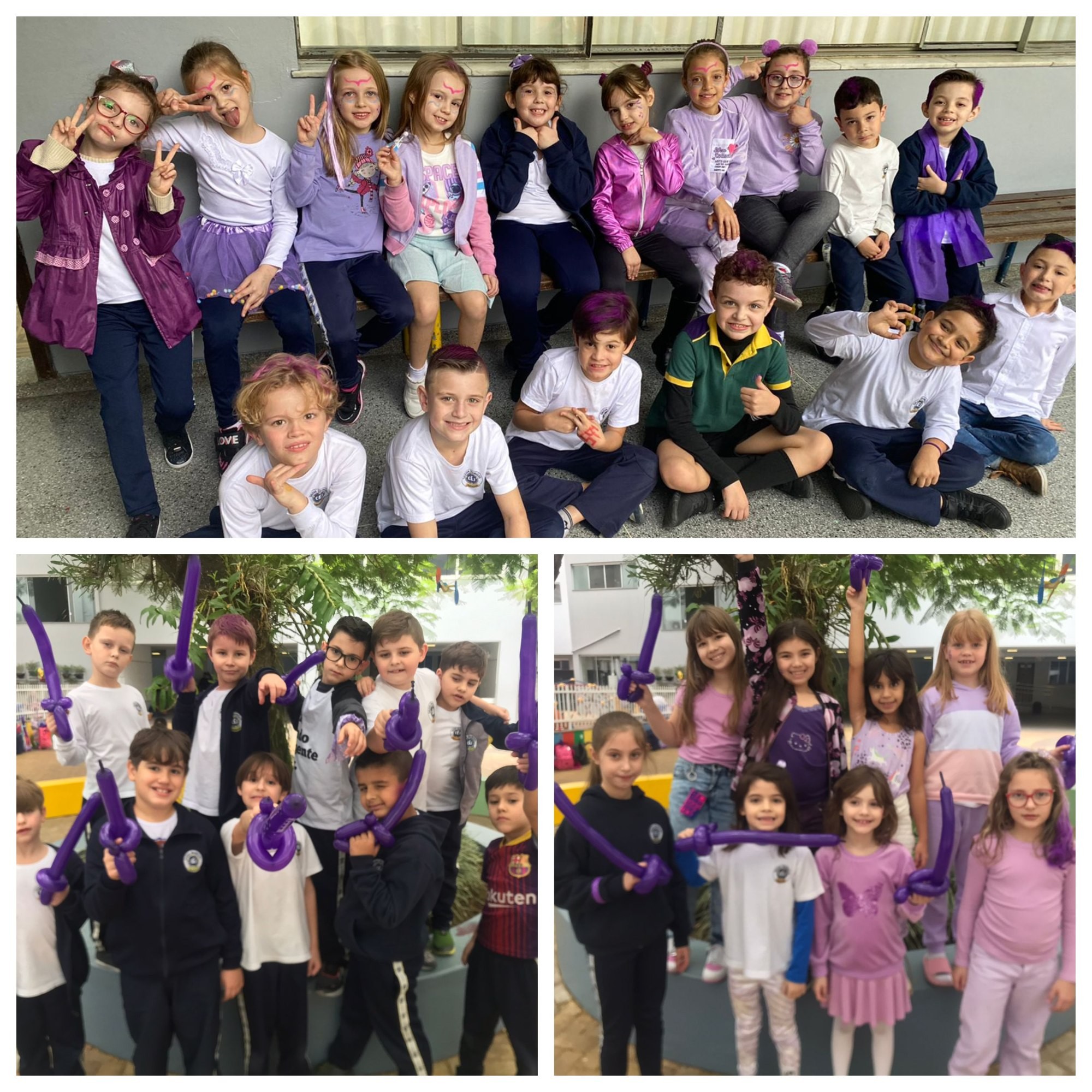 Com a temática Música e a cor Roxa/Lilás, cores que representam a criatividade, 80% dos professores, funcionários e alunos aderiram à proposta e coloriram o colégio com suas roupas e acessórios, foi lindo de ver!