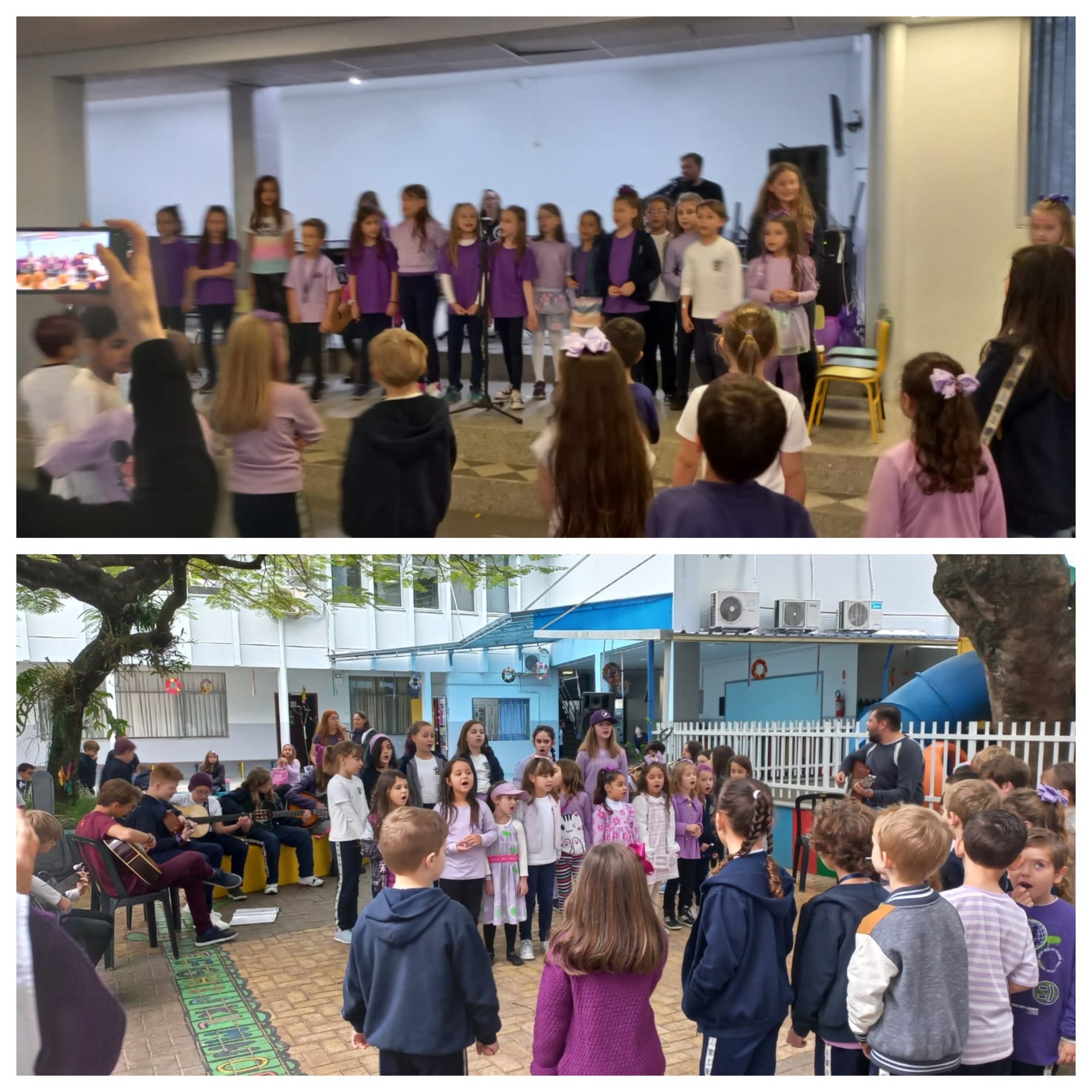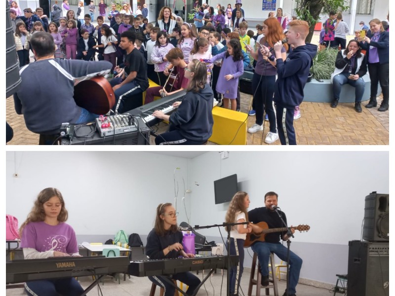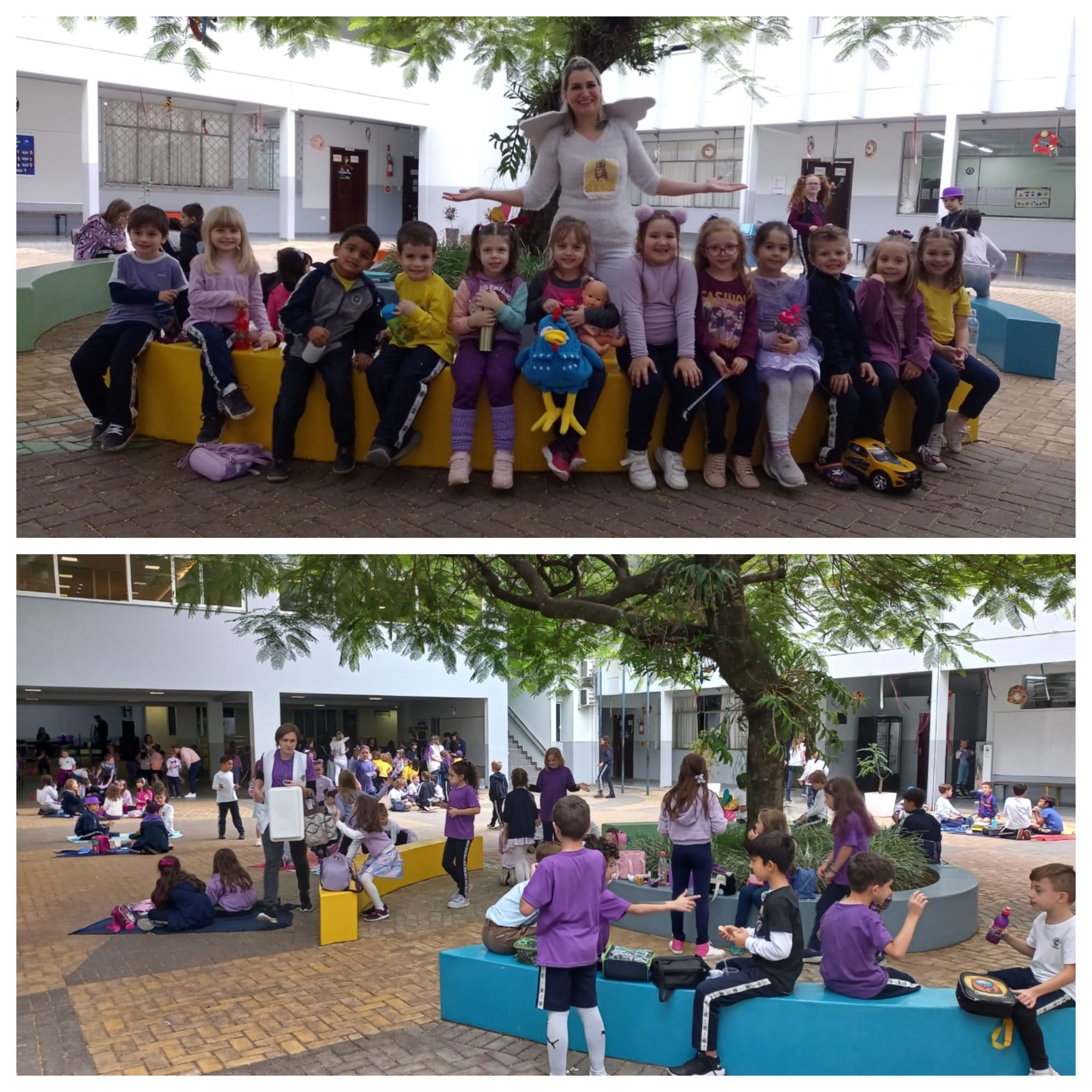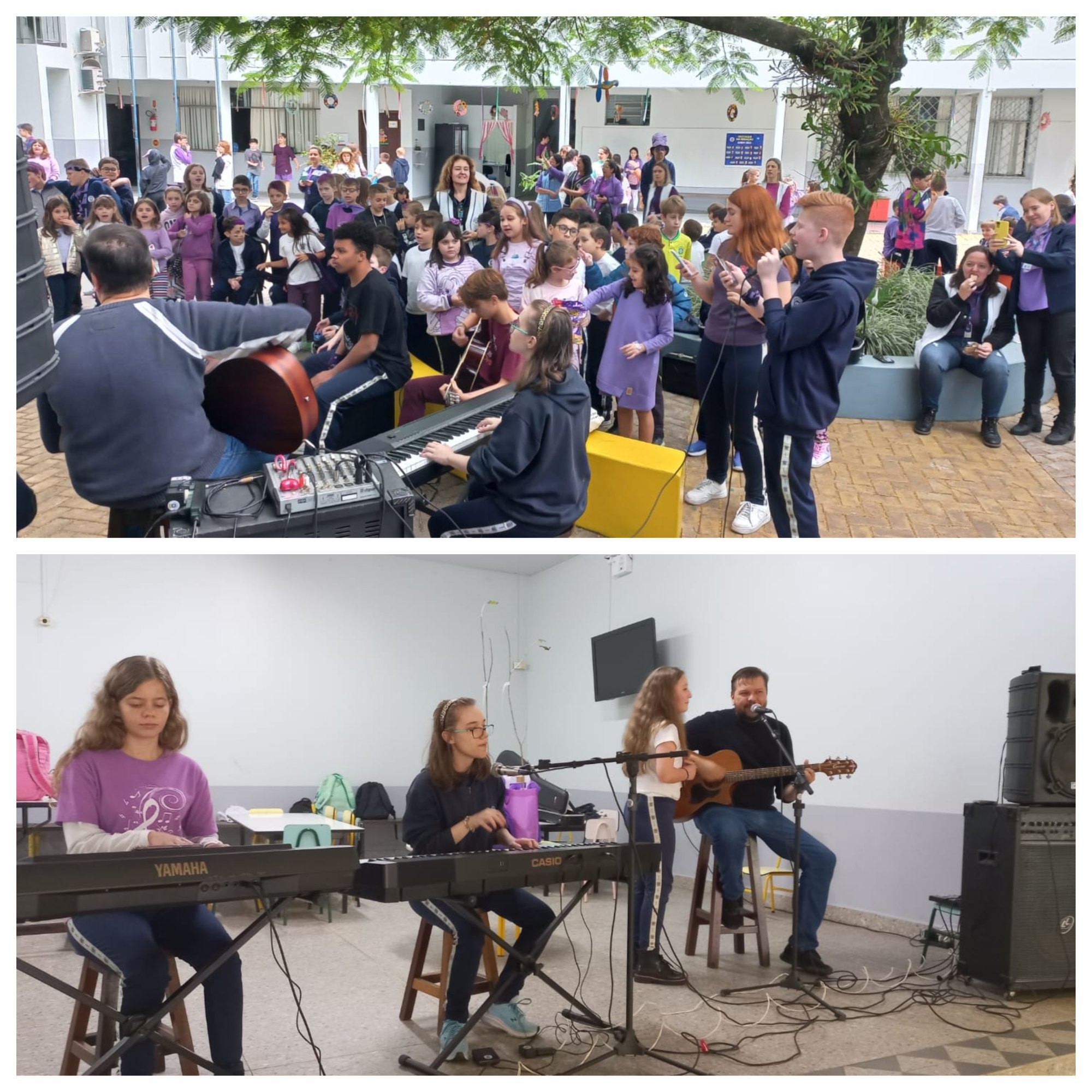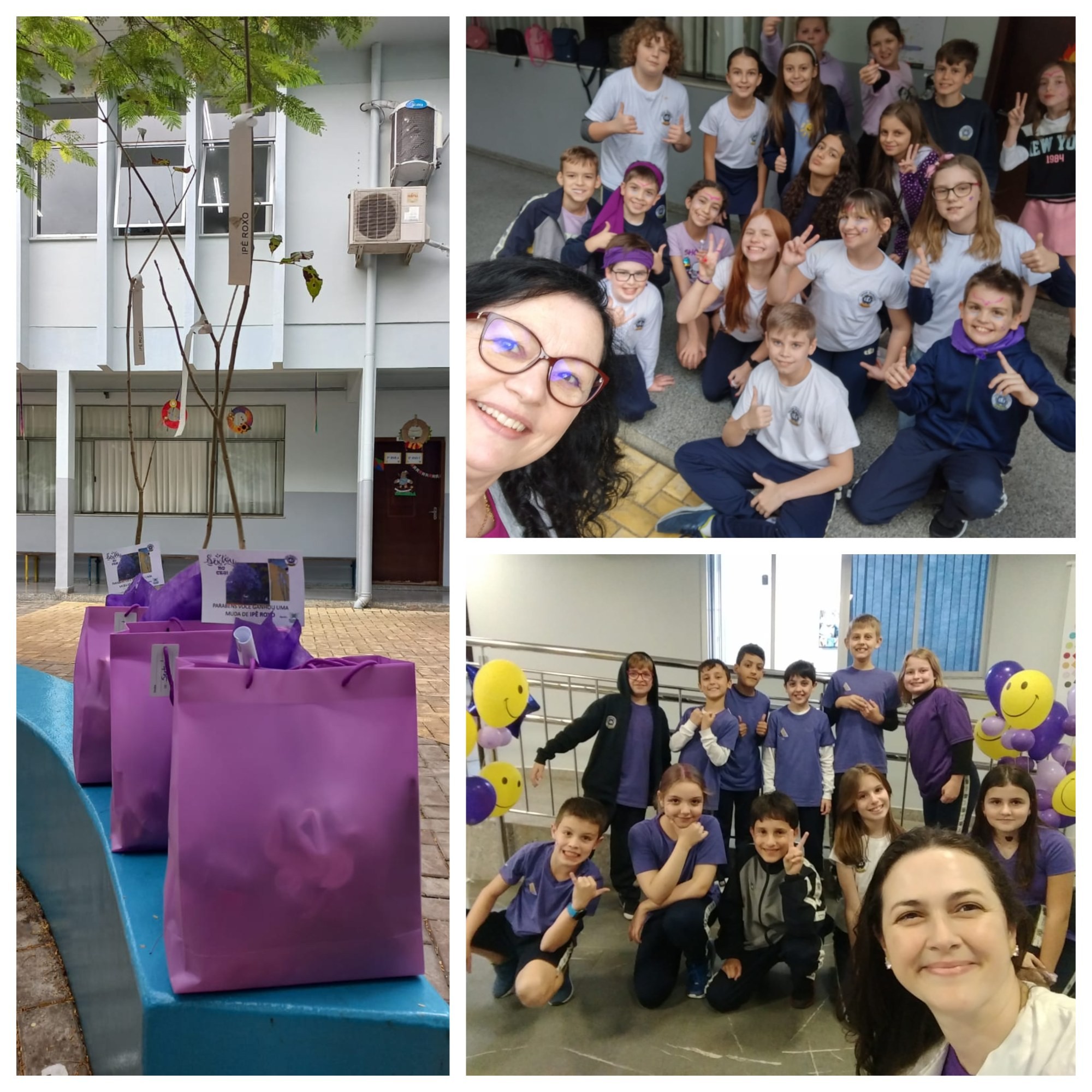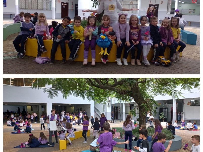 Com a temática Música e a cor Roxa/Lilás, cores que representam a criatividade, 80% dos professores, funcionários e alunos aderiram à proposta e coloriram o colégio com suas roupas e acessórios, foi lindo de ver!