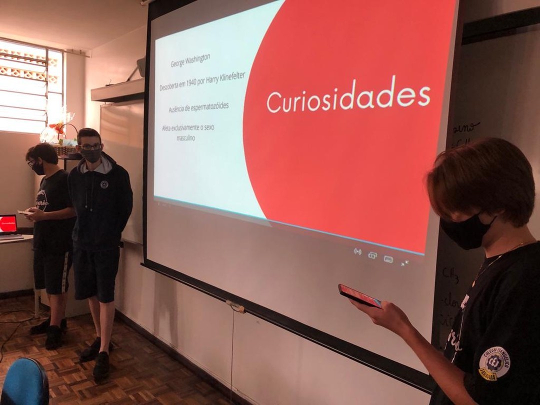 Mais notíciasAlunos do Terceirão esbanjaram conhecimento na elaboração de slides para apresentação de aberrações cromossômicas e síndromes (11 itens). A atividade foi desenvolvida nas aulas de Biologia nos dias 23,25 e 26 de novembro.