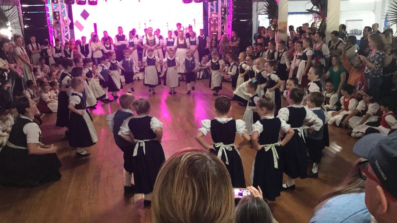A apresentação aconteceu no dia 21/07 na 34ª Kolonistenfest – Festo do Colono na Sociedade Aliança, onde o Grupo Folclórico Grunes Tal estava promovendo o 3 Encontro de Grupos Folclóricos Infantis que reuniu mais de 150 crianças e jovens folcloristas.