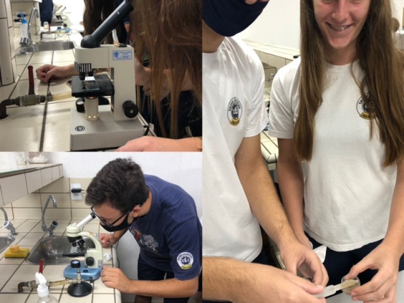 Mais notíciasA turma do Terceirão analisou amostras de água coletadas em lagoas na aula de Biologia no dia 18 de março. Com a atividade, compreenderam que existem algas uni e pluricelulares, isoladas e coloniais.
