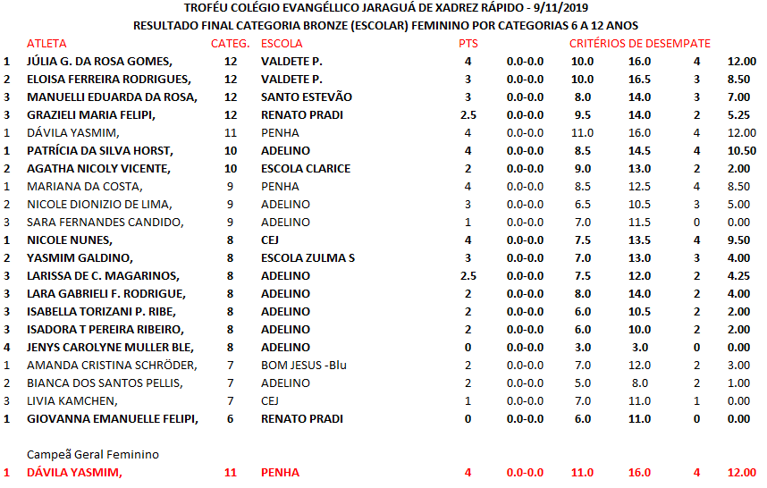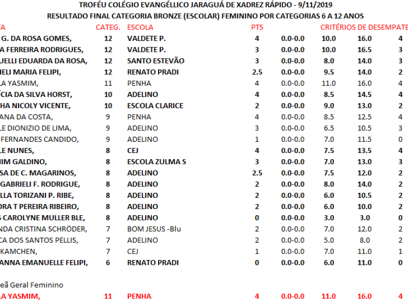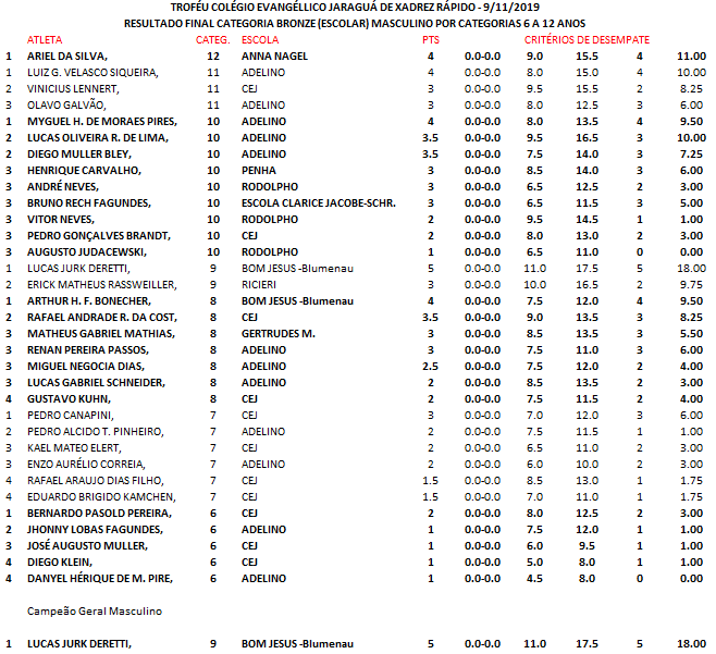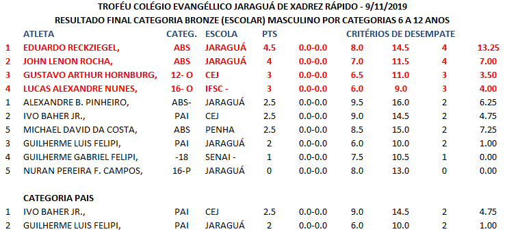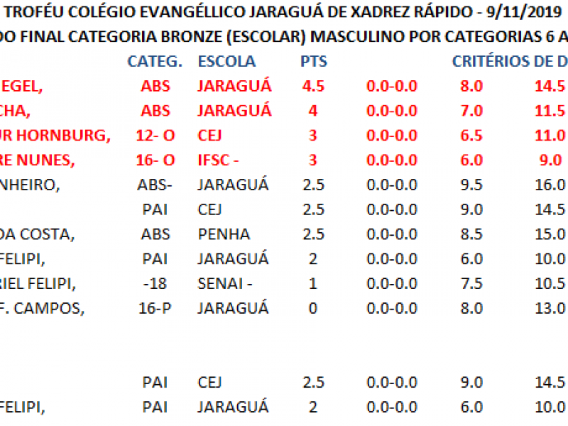 TROFÉU COLÉGIO EVANGÉLICO JARAGUÁ DE XADREZ RÁPIDO