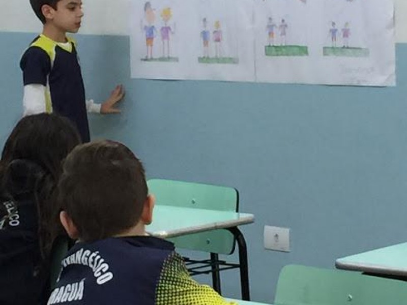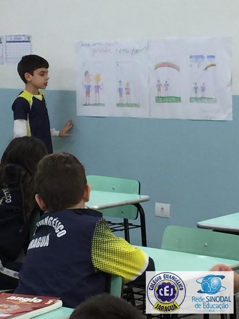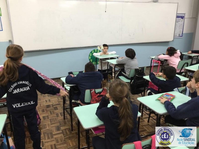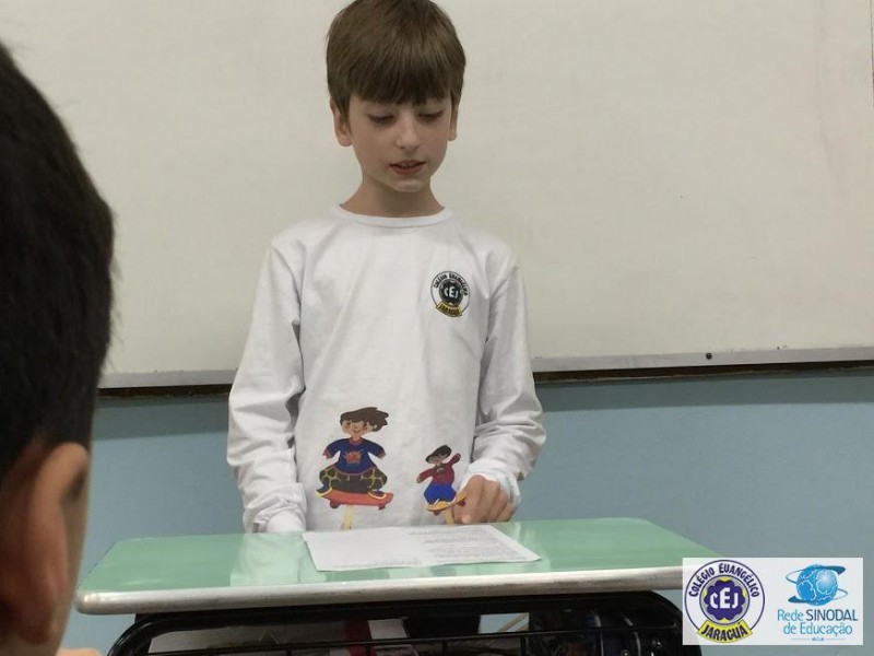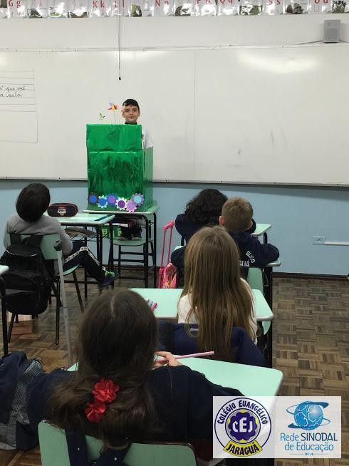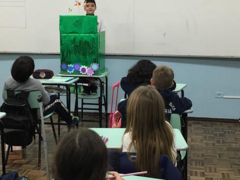 Após a leitura do texto, cada aluno preparou uma apresentação do texto lido. O objetivo era que o aluno compreendesse e transmitisse a mensagem, interpretando o que foi lido de forma criativa. Para isso poderiam utilizar fantoches, teatro de sombras, história de varal, cenário em caixa de sapatos, bonecos, palitos com personagens, etc. Materiais que deveriam ser selecionados e trazidos no retorno das férias escolares. Pois na primeira semana iniciaram as apresentações, de forma aleatória.