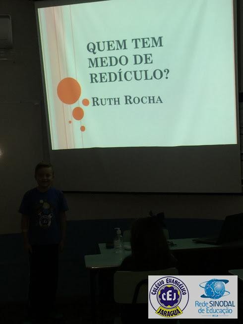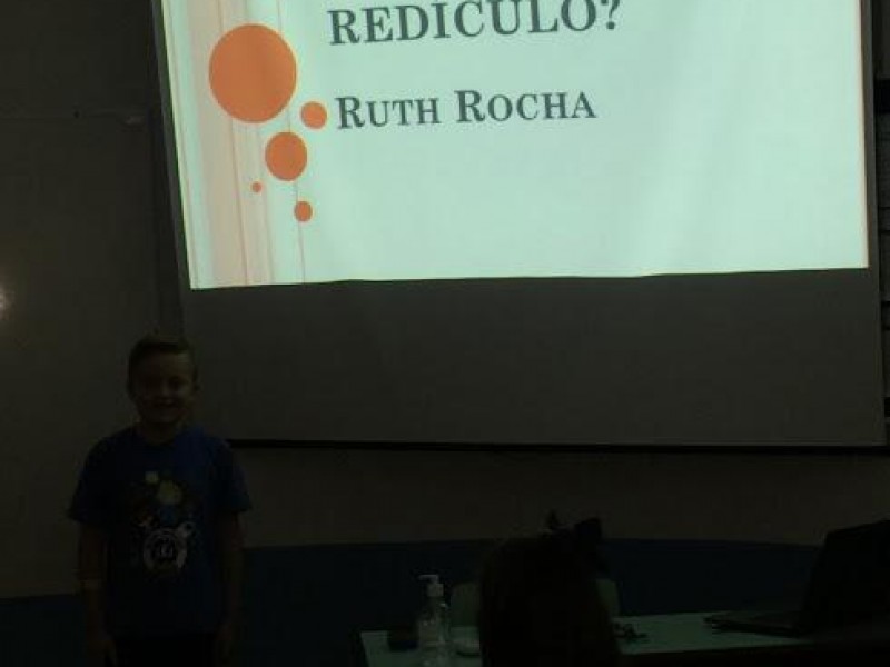 Cada aluno ficou encarregado de ler um texto escrito por Ruth Rocha no livro “Quem manda na minha boca sou eu!”.