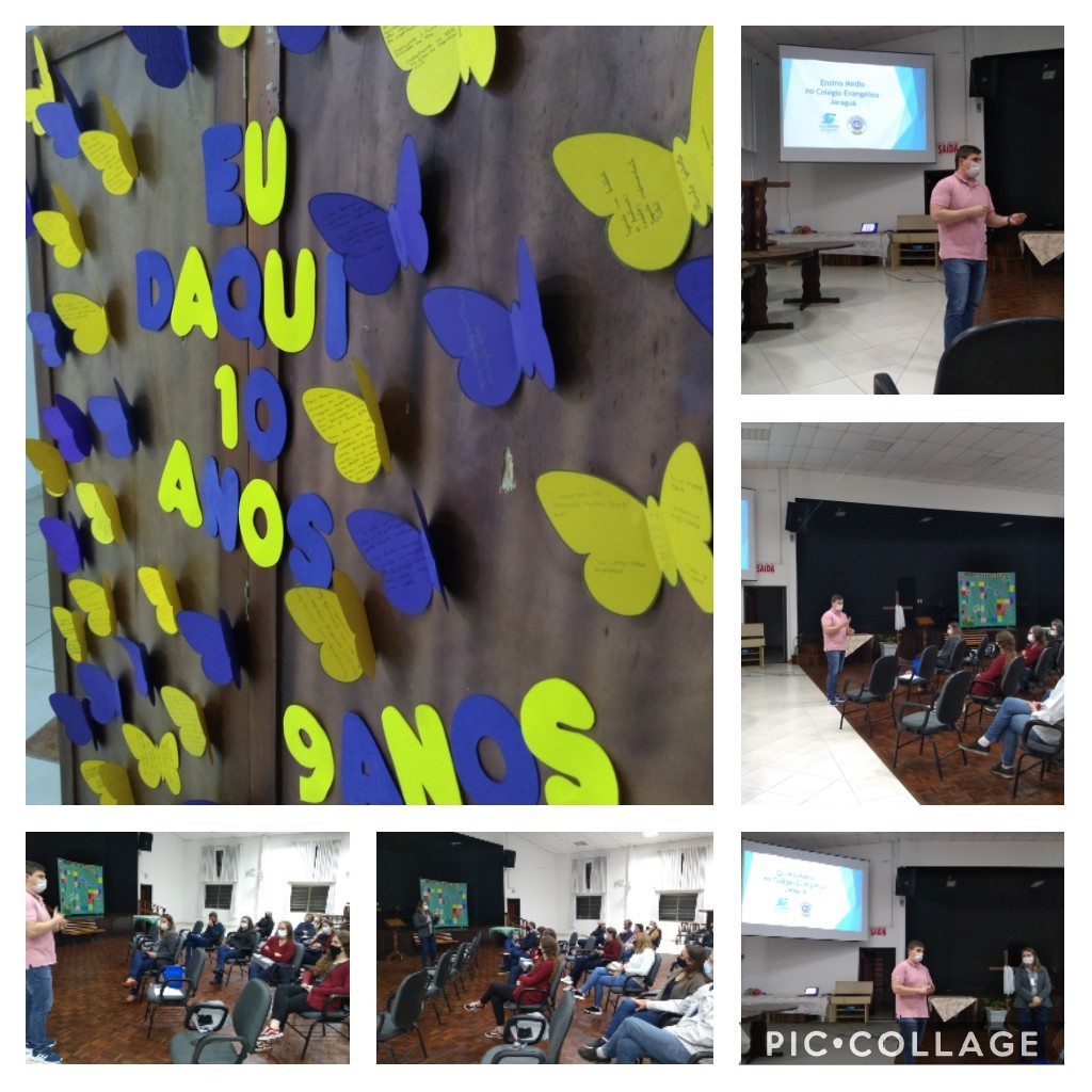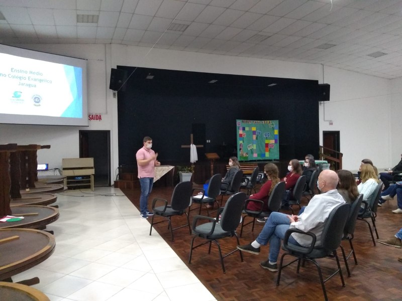 Mais notíciasNo mês de setembro e outubro os alunos dos 9ºs anos tiveram diversas atividades para conhecer a proposta do Novo Ensino Médio do Colégio Jaraguá. Entre as atividades foram programadas também duas reuniões com as famílias, sendo que um dos encontros foi presencial e o outro virtual. No encontro presencial as coordenadoras Margareth Ripp e Rikeli T Hackbarth conversaram com as famílias sobre a proposta do CEJ, itinerários formativos e carga horária, entre outros assuntos pedagógicos. No encontro virtual os pais tiveram uma palestra com Débora Hoffmann, assessora pedagógica do ANGLO Sistema de Ensino. Nessa palestra Débora aprofundou ainda mais o tema, destacando as possibilidades que o Novo Ensino Médio oferece e como as famílias podem ajudar seus filhos nesse momento de transição. Além disso, trouxe informações importantes sobre a metodologia que o ANGLO utiliza para complementar e aprofundar essa formação.
