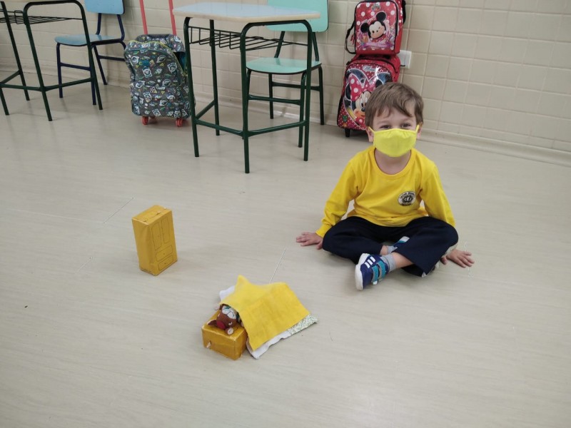 Os alunos confeccionaram, cada um o seu quarto, usando caixas de leite.