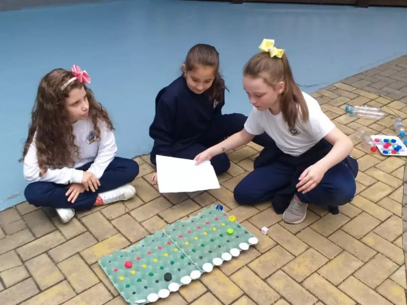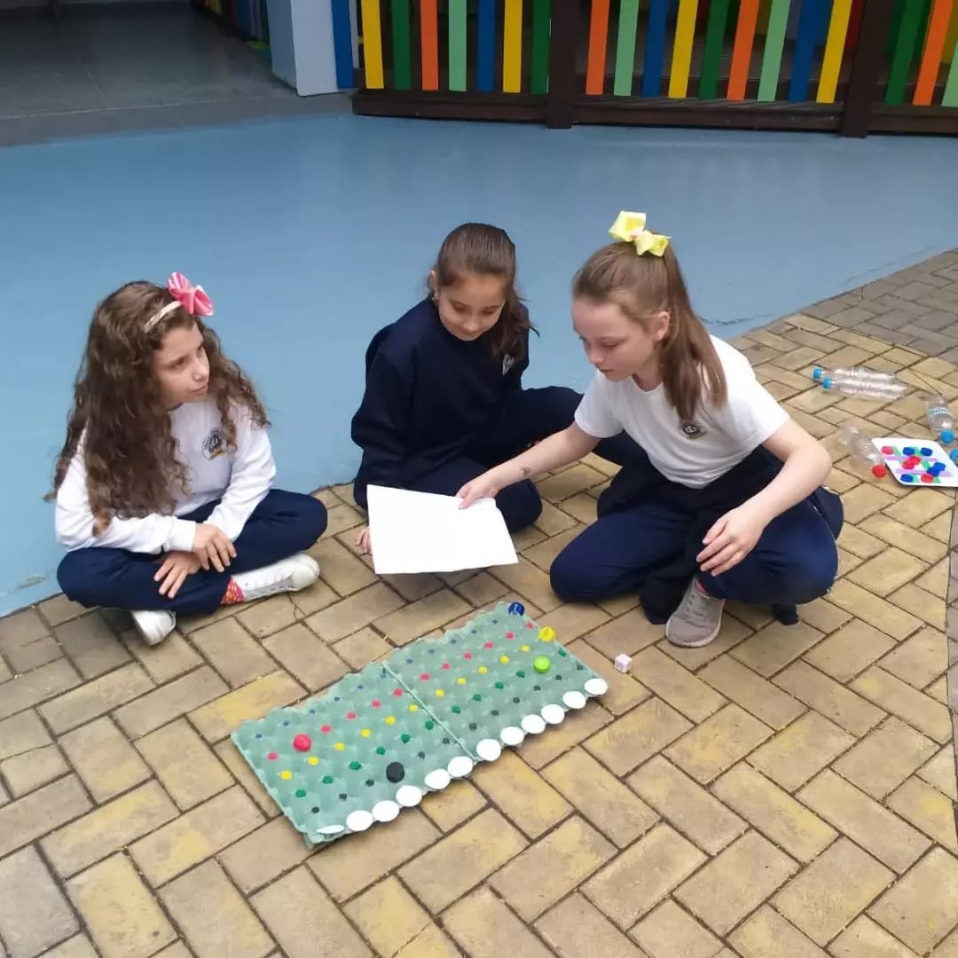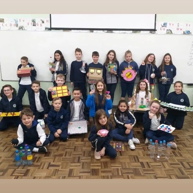 Assim, o 3°ano A e suas famílias, construíram um brinquedo ou jogo com materiais recicláveis que tinham disponível em casa.