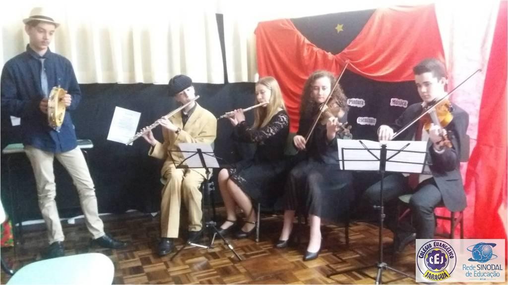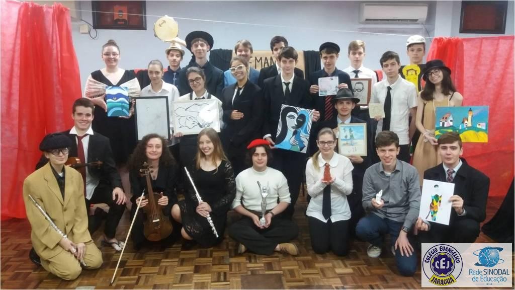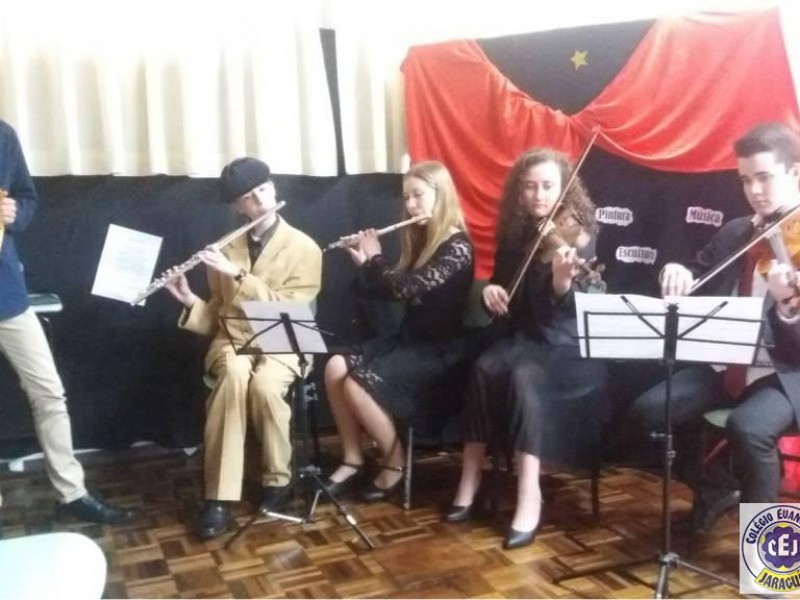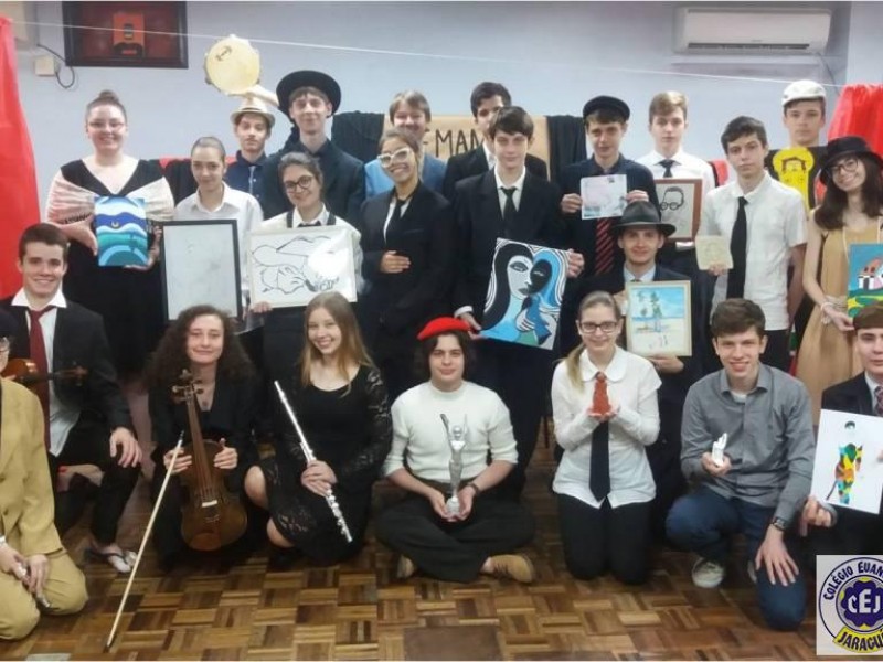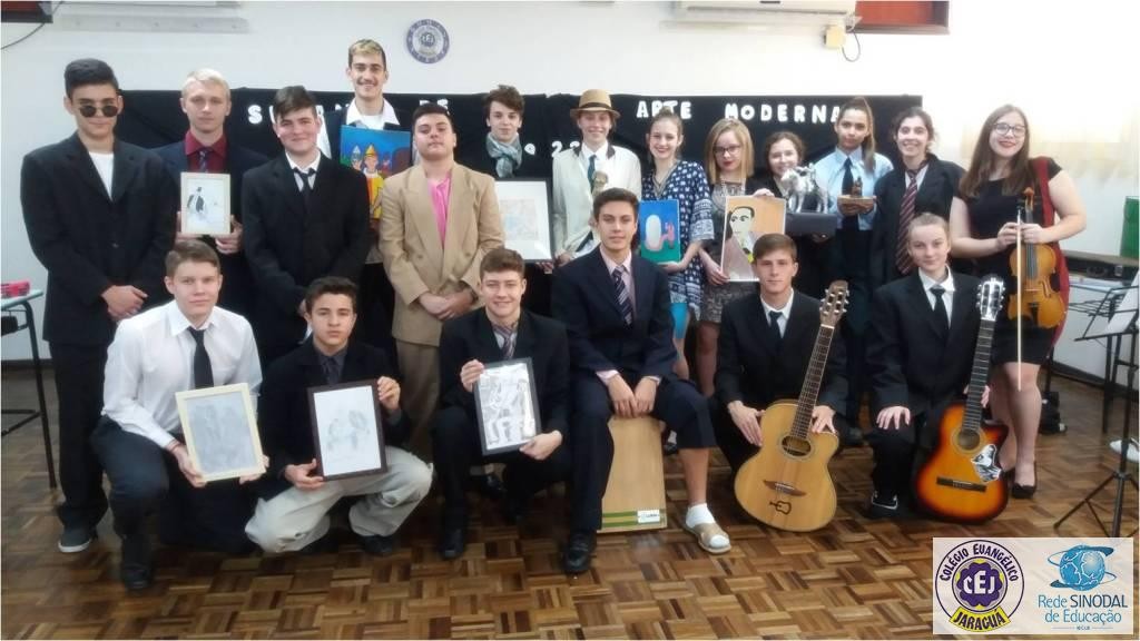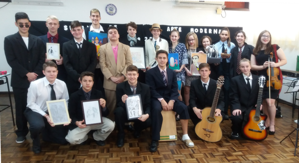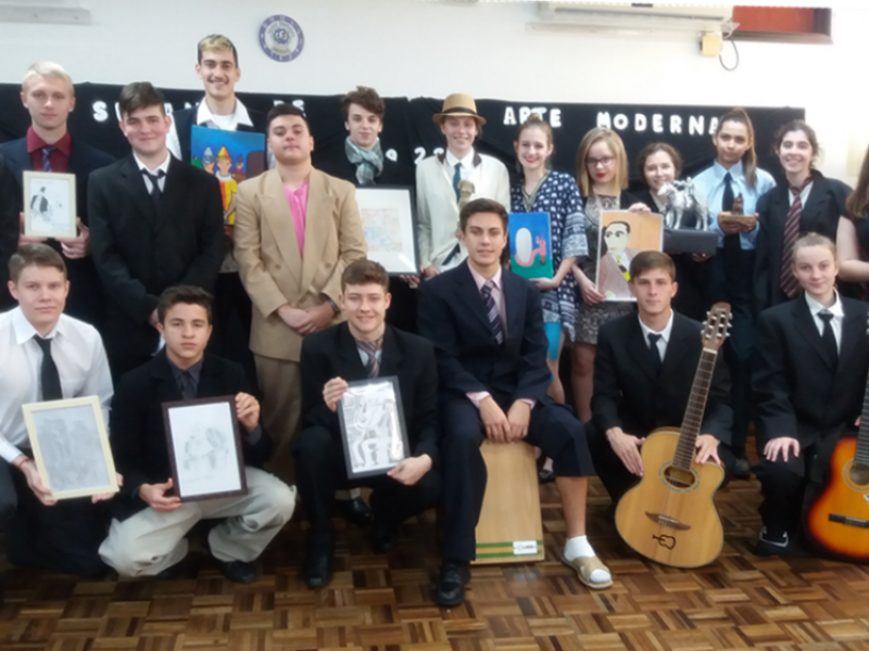 Mais notíciasPara finalizar as aulas de Literatura do 3º bimestre, vivenciar e sentir a arte, os alunos do 2ºano do Ensino Médio simularam, com elegância, criatividade, dedicação e muito conteúdo, a “Semana de Arte Moderna de 1922”. Depois do estudo sobre as “Vanguardas Europeias” e o “Modernismo brasileiro”, os alunos pesquisaram alguns participantes do evento, produziram telas, esculturas e caricaturas modernistas, ensaiaram declamações e músicas, organizaram o ambiente da época e realizaram as apresentações, interpretando os artistas com figurinos, acessórios e verbalização da biografia, características artísticas e de uma obra. Assim, a professora colocou em prática o conteúdo da disciplina, incitou a expressão oral e corporal, a criatividade, a pesquisa e o trabalho coletivo e individual.