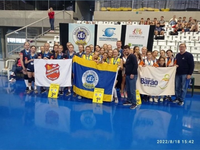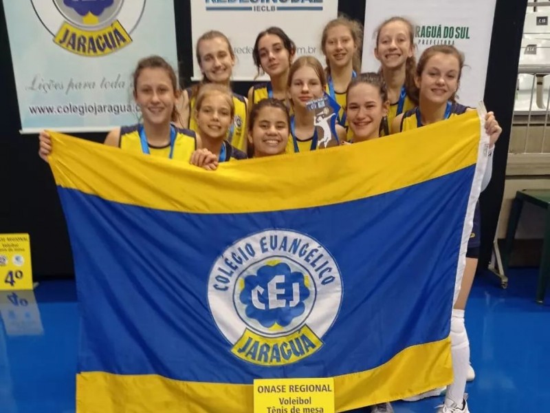 Voleibol feminino sub 13 do CEJ campeão da ONASE REGIONAL, realizado na Arena Jaraguá dia 18 de agosto. Mais notícias