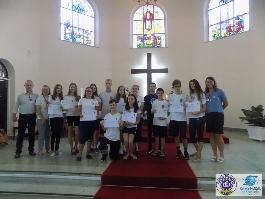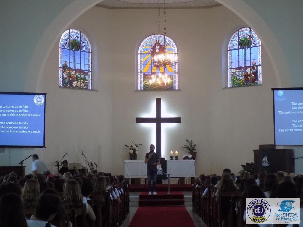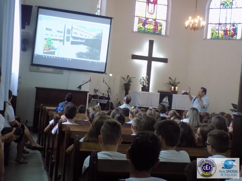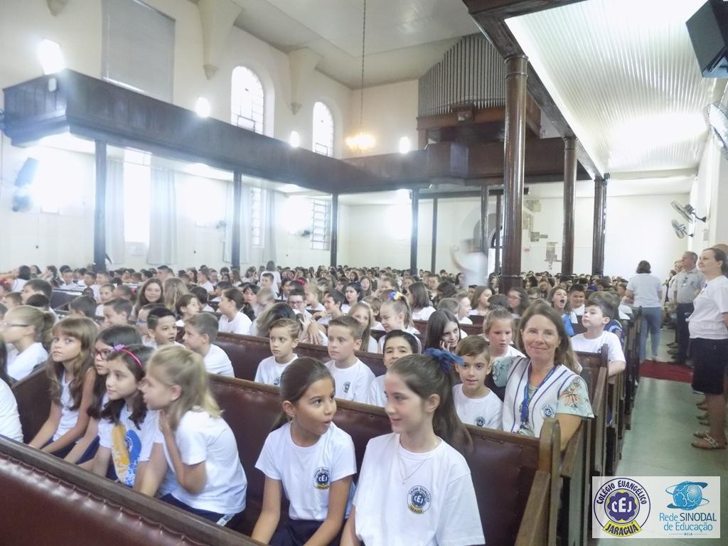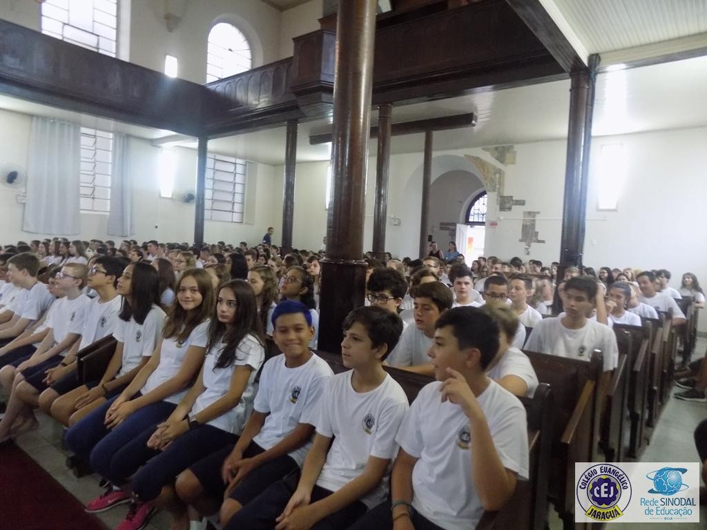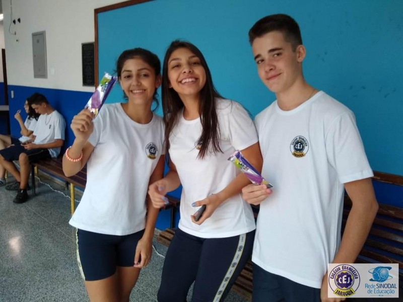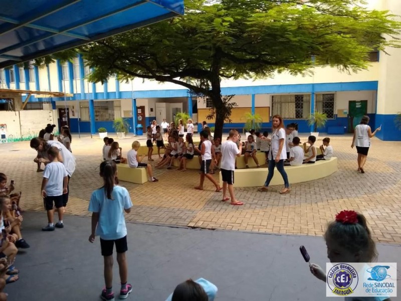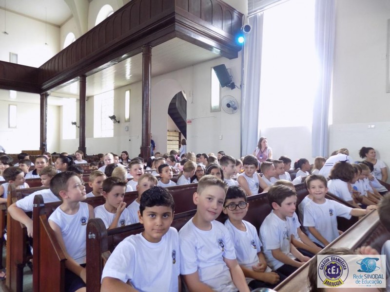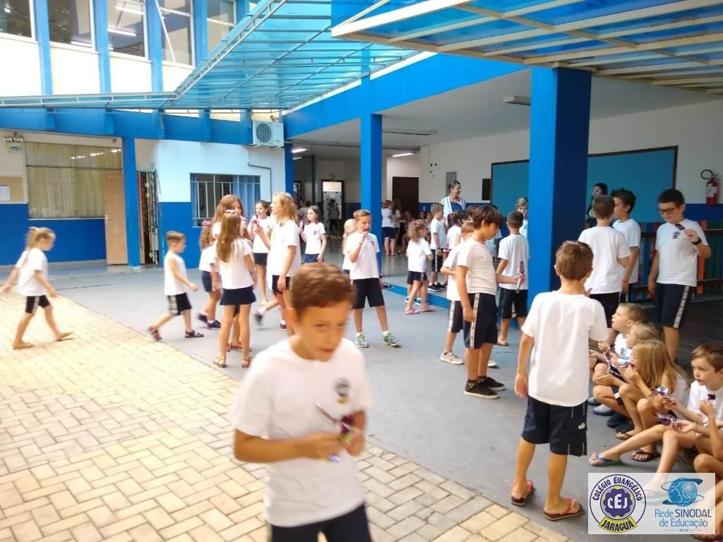 Mais notíciasSegunda-feira foi de rever os amigos e iniciar mais um ano letivo no Colégio Jaraguá. O dia foi de animação na recepção aos alunos. Além das atividades em sala de aula, as turmas participaram da celebração na Igreja. Nesse ano a escola está diferente em função das obras de ampliação, mas isso não impediu que os corredores estivessem enfeitados e alegres!
