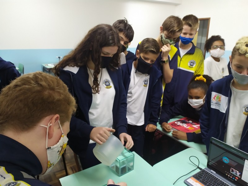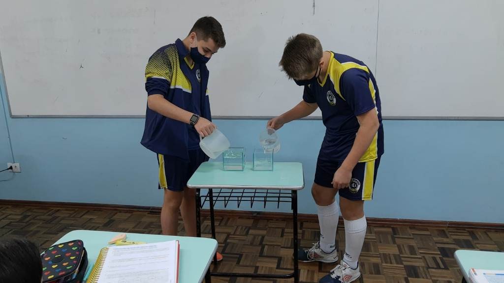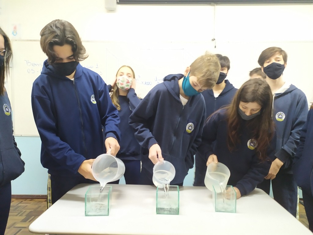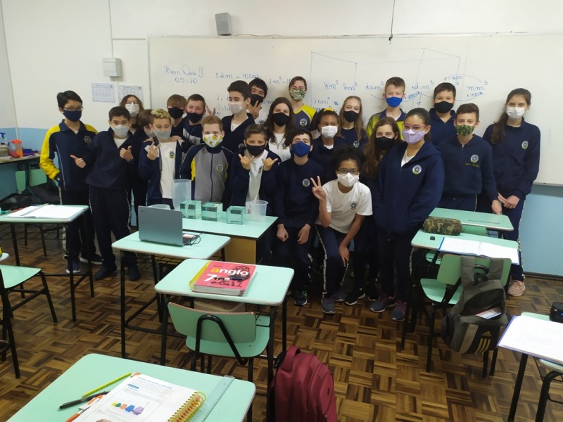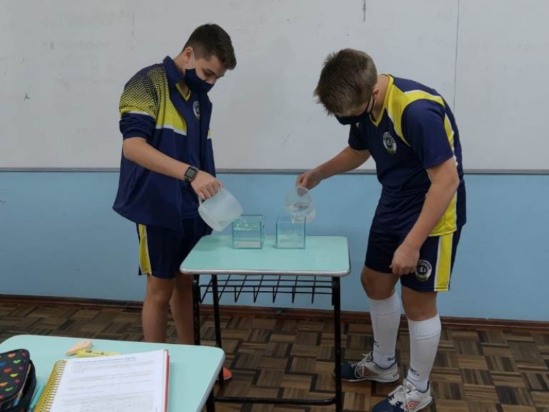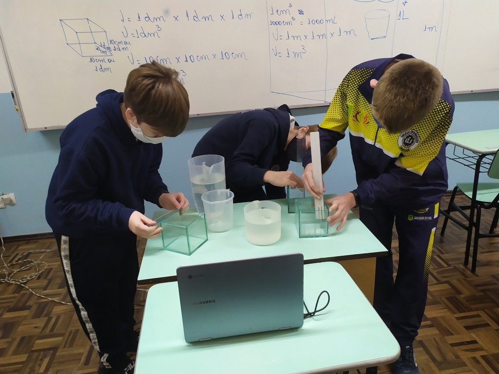 Mais notíciasNo mês de outubro foi realizada uma experiência prática utilizando jarras com a capacidade de 1 litro e cubos de vidro de 1dm de aresta. Através dessa experiência, os alunos comprovaram que realmente em 1dm³ (um decímetro cúbico) cabe 1 litro de água.Essa experiência foi realizada pelo alunos das 7°anos A,B e C e orientada pelas professoras Priscila e Wânia.
